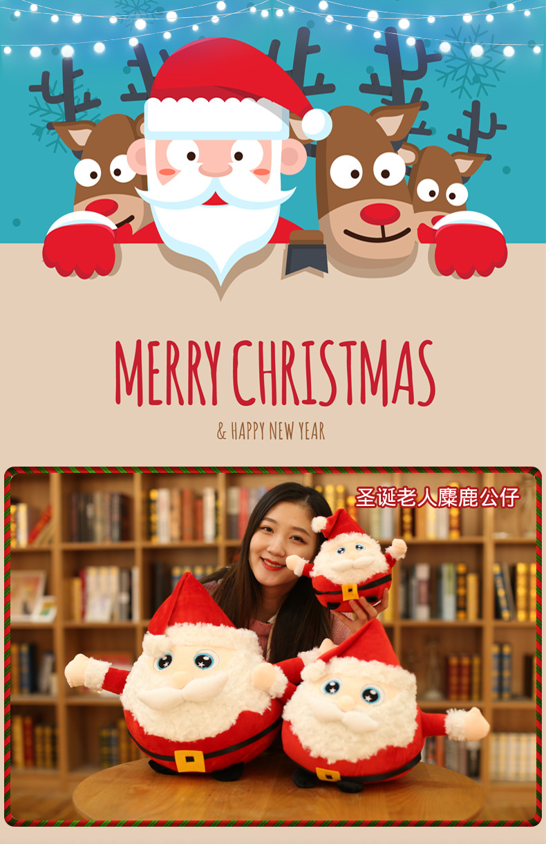 美汇特供:创意圣诞节礼物圣诞老人麋鹿抱枕毛绒玩具公仔布娃娃送儿童女生