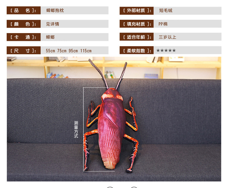 美汇特供:创意ins网红同款仿真蟑螂抱枕公仔恶搞小强毛绒玩具送女生礼物
