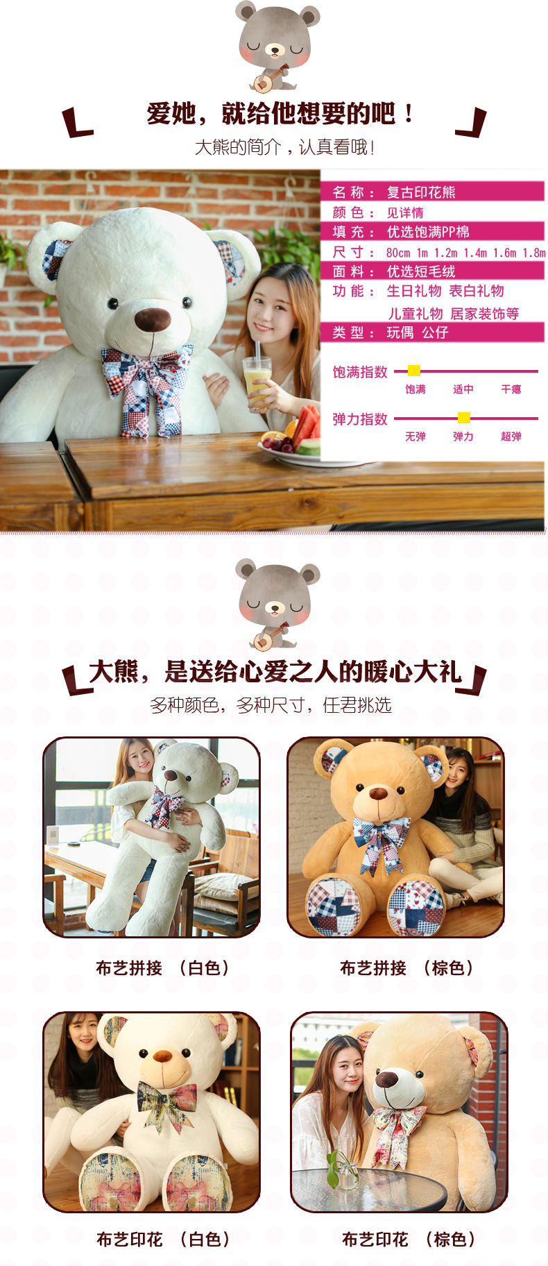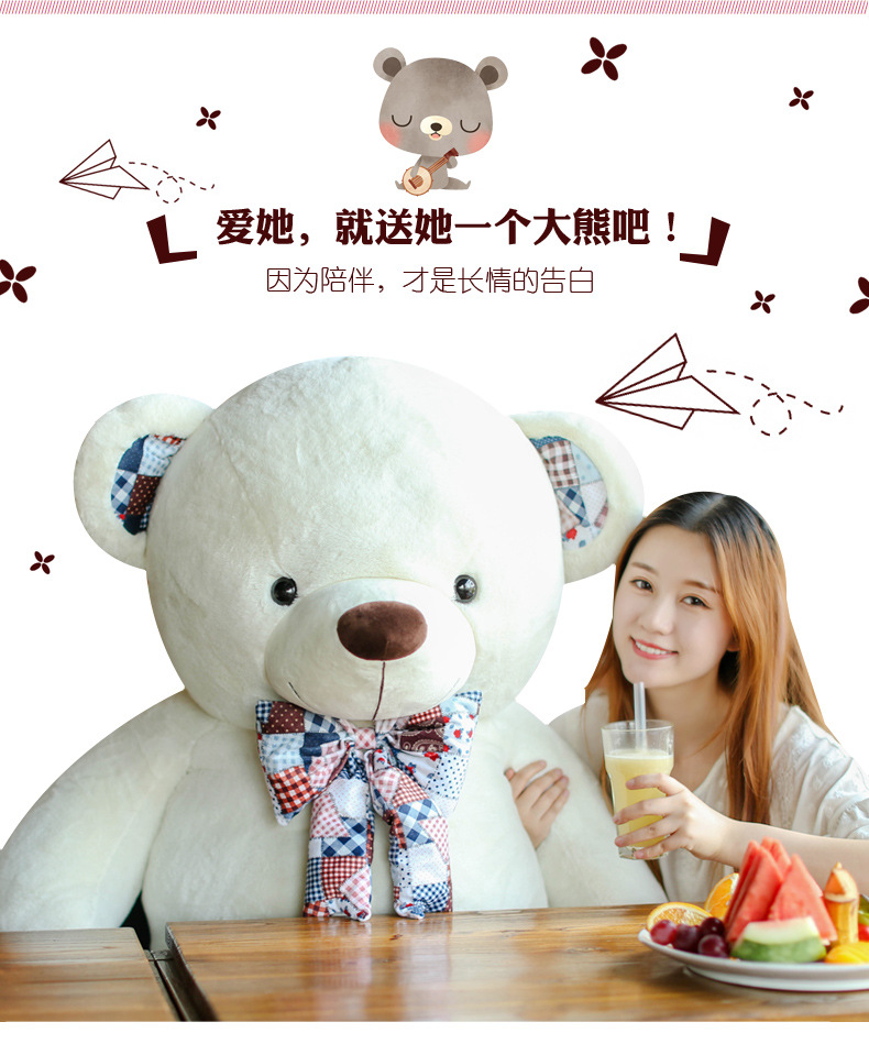 美汇特供:毛绒玩具熊复古印花熊泰迪熊布娃娃抱抱熊玩偶大号熊猫公仔抱枕