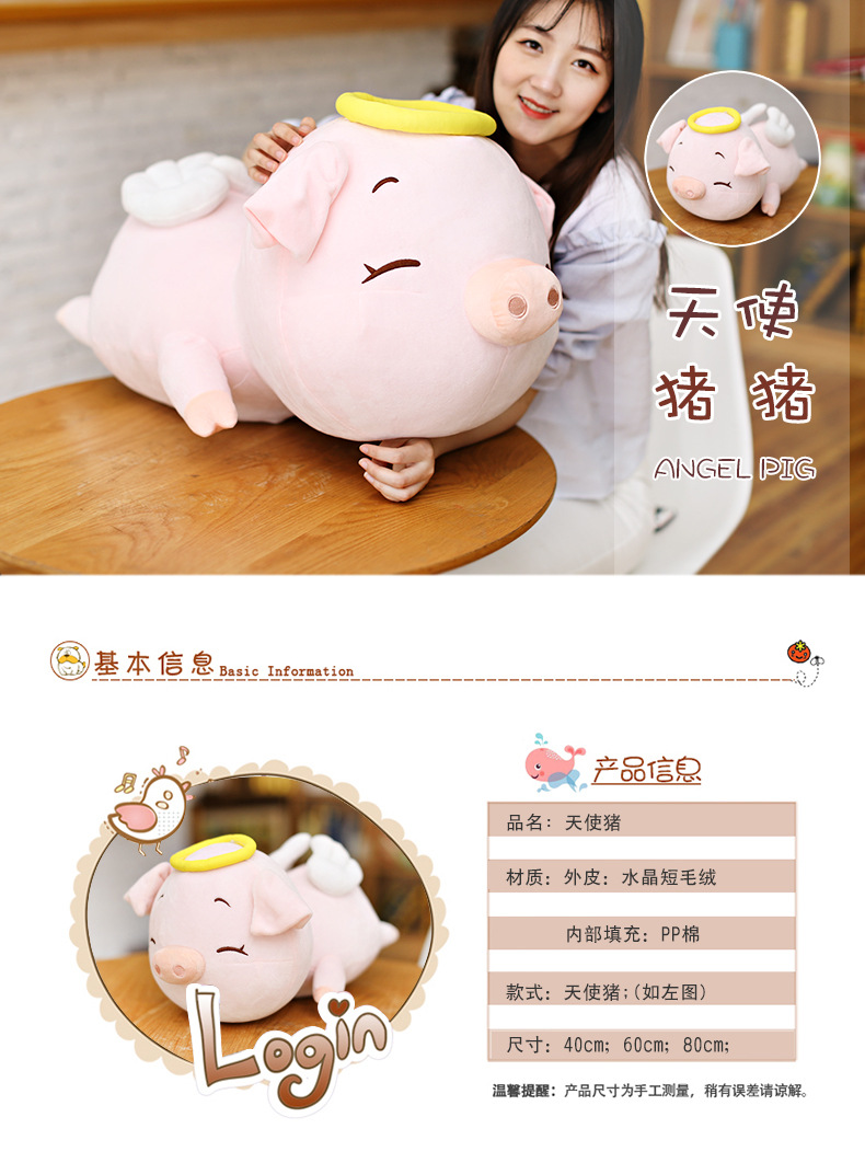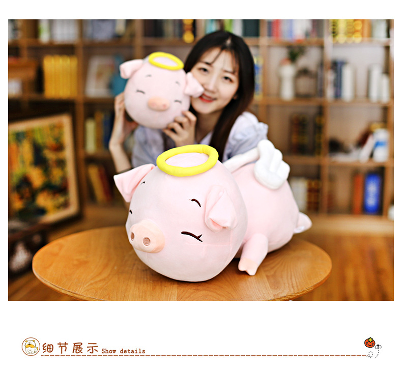美汇特供:创意卡通天使猪抱枕小猪公仔布娃娃猪猪玩偶毛绒玩具趴趴猪礼物女