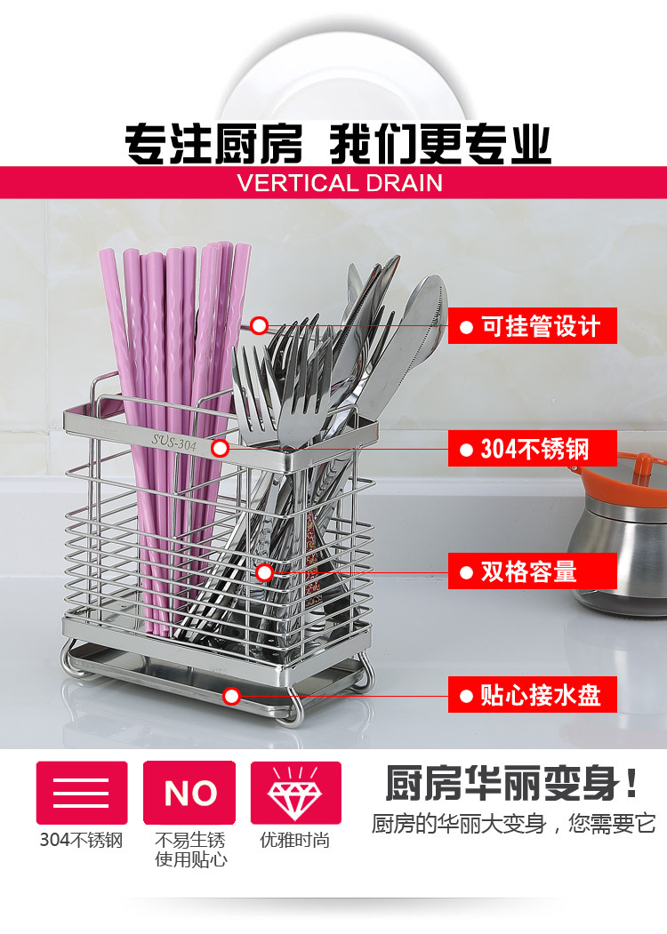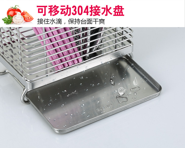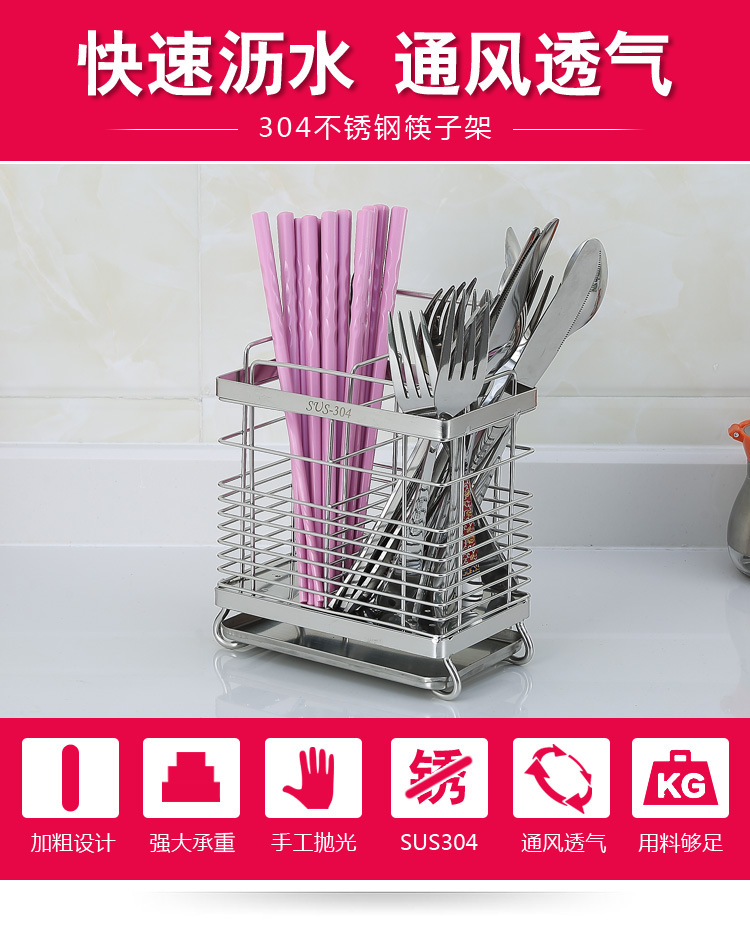 美汇特供:腾巍304不锈钢筷架筷笼筷子盒收纳沥水架消毒用筷子架餐具笼