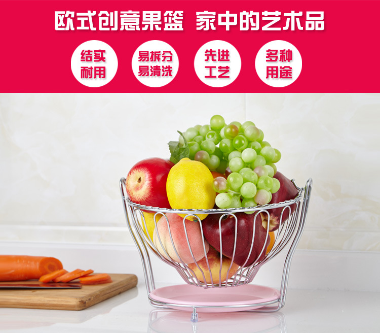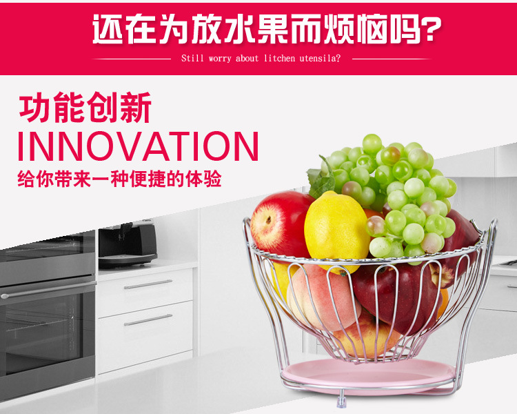 美汇特供:欧式时尚不锈钢色摇摆水果篮厨房客厅餐桌送接水盘
