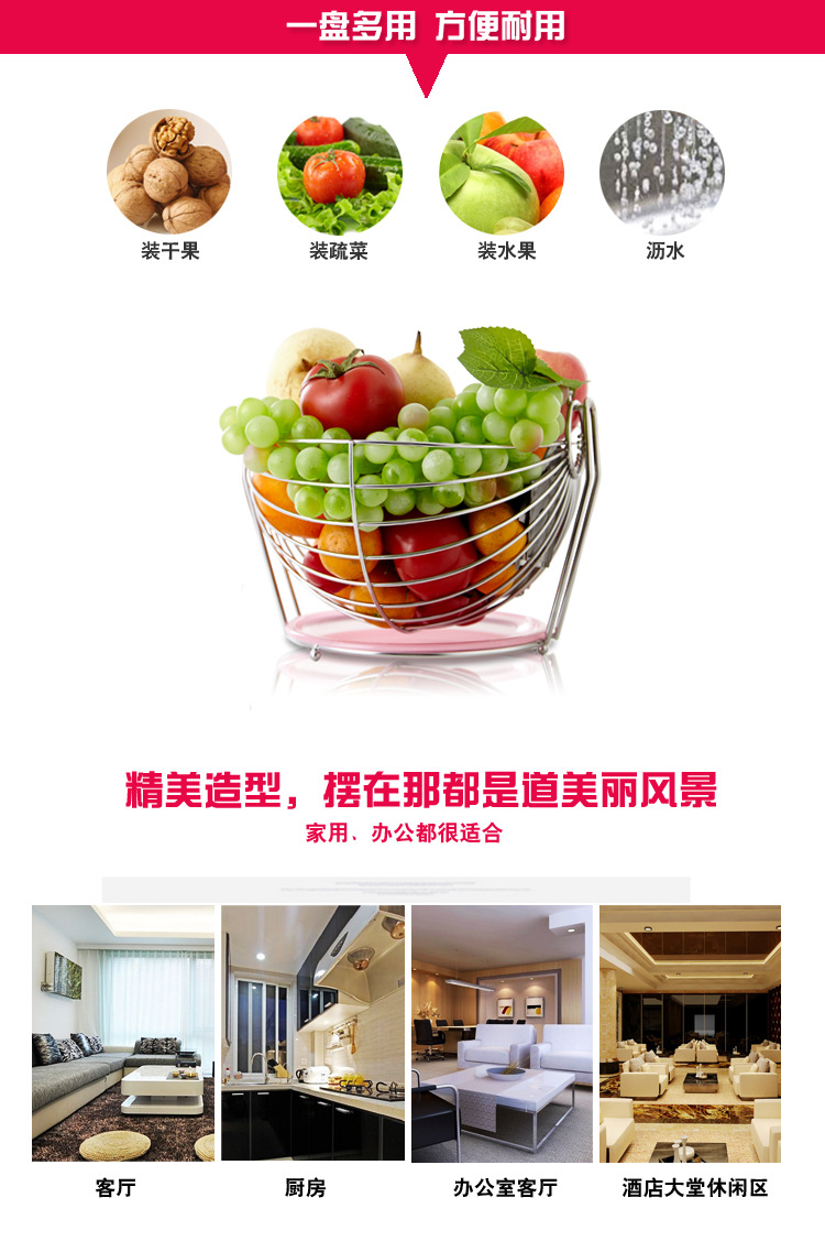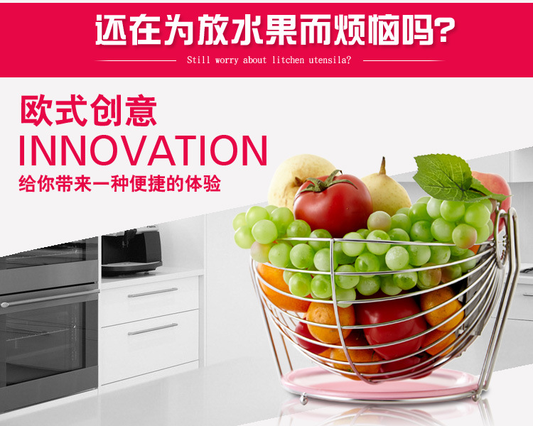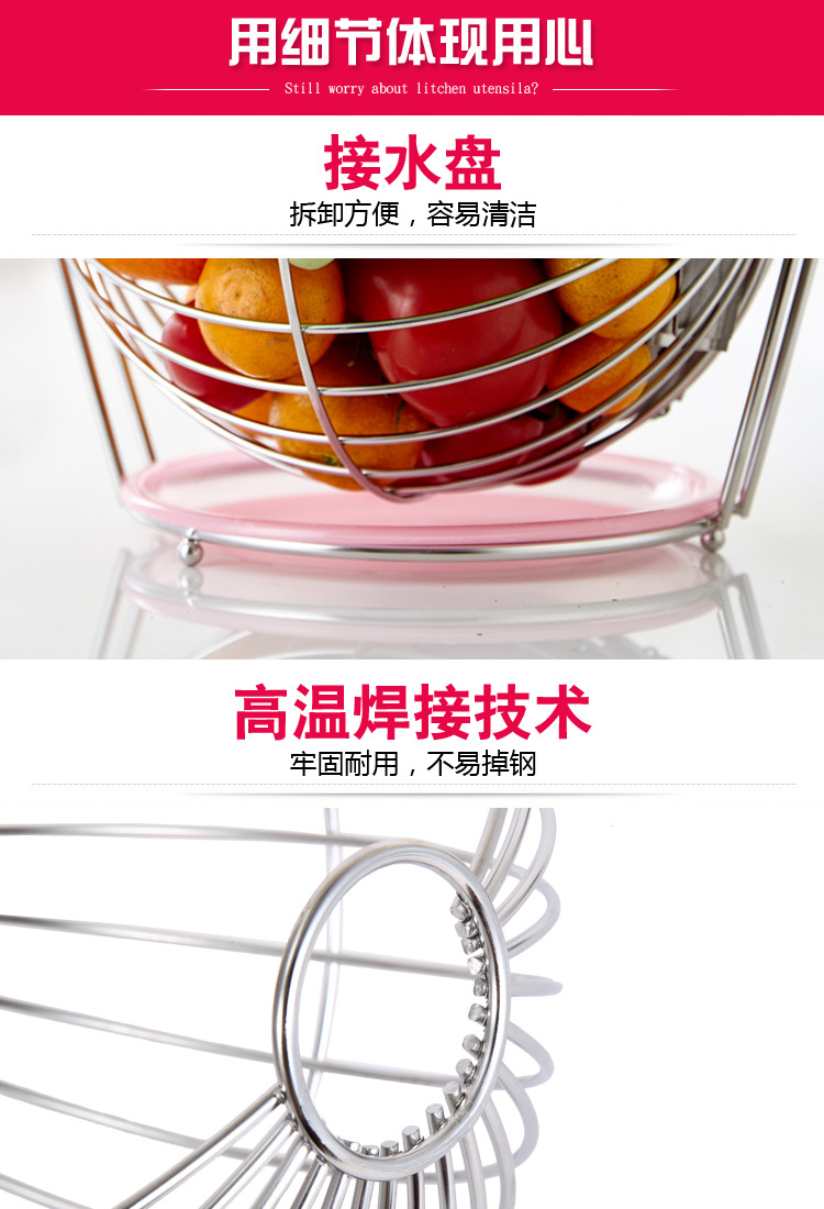美汇特供:家居用品欧式不锈钢水果篮水果盘水果盆客厅餐厅装饰