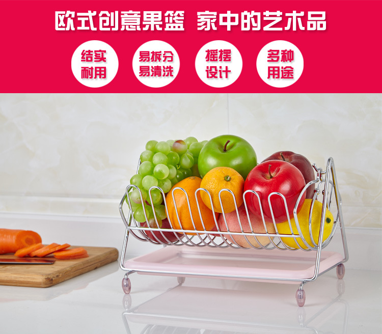 美汇特供:腾巍不锈钢色水果篮欧式创意现代客厅水果盘篮置物架特