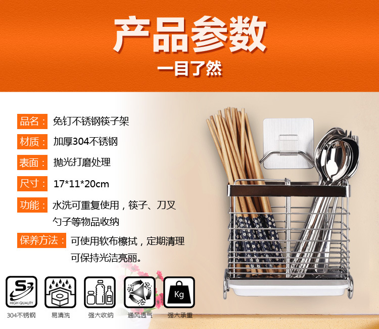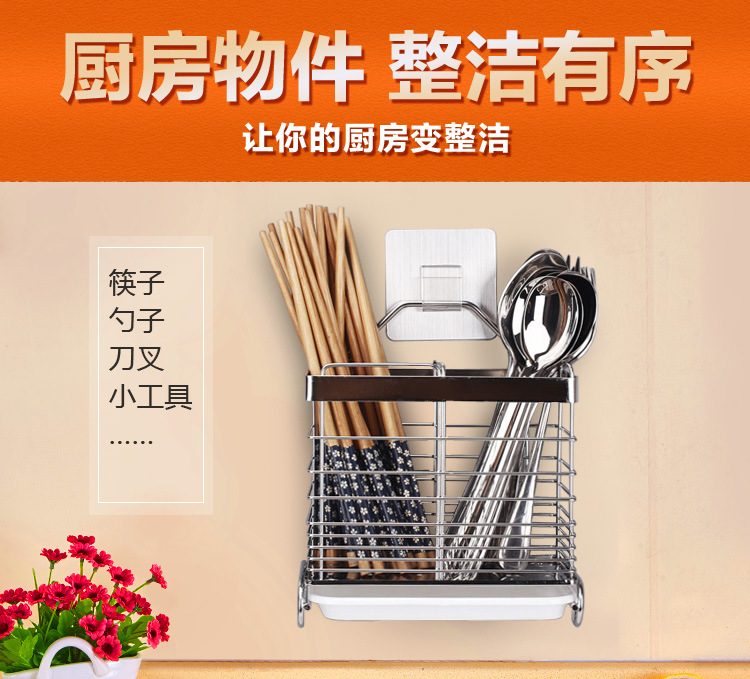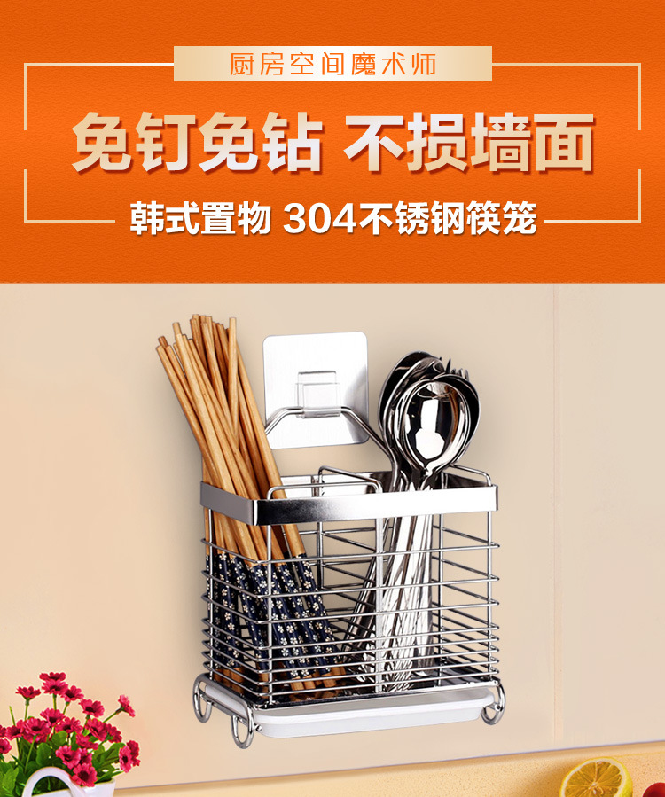 美汇特供:腾巍筷子架免打孔筷笼304不锈钢沥水筷子盒筒厨房置物架