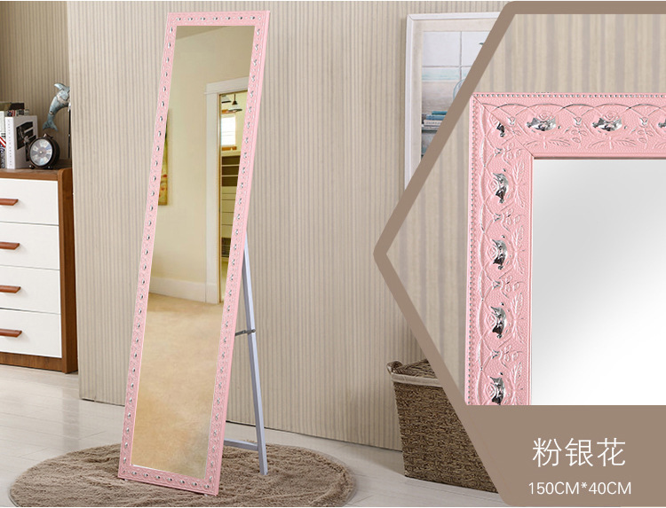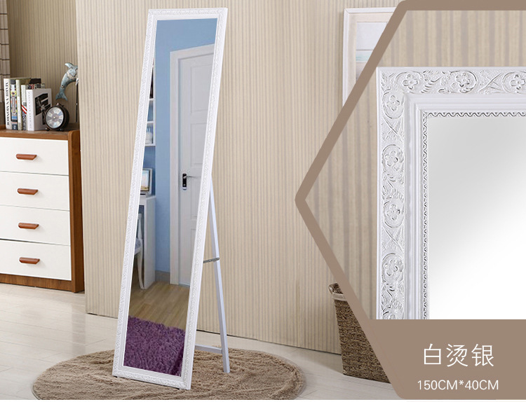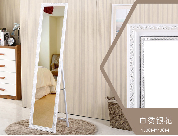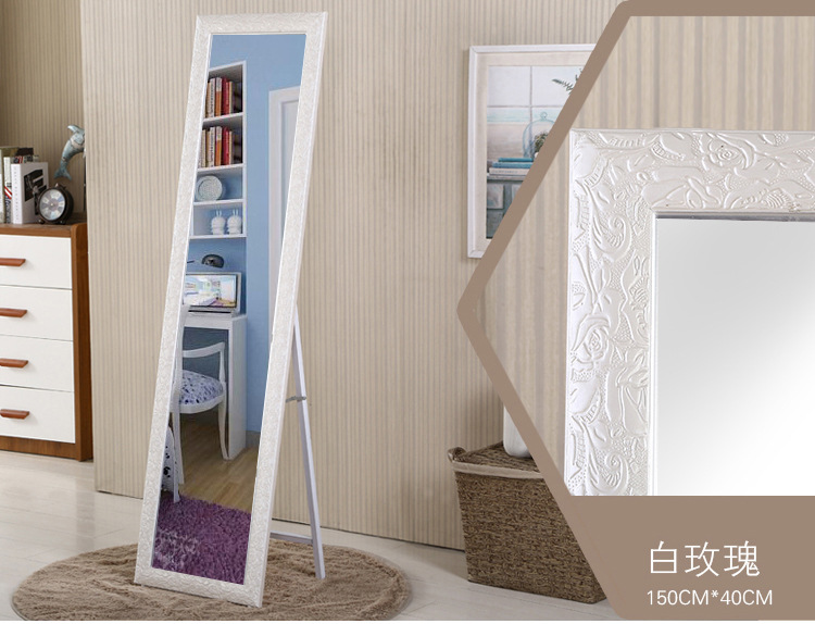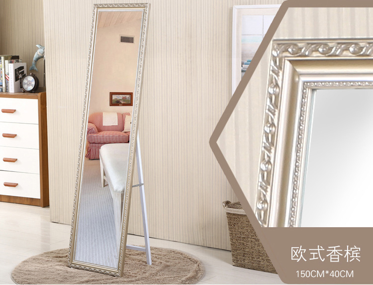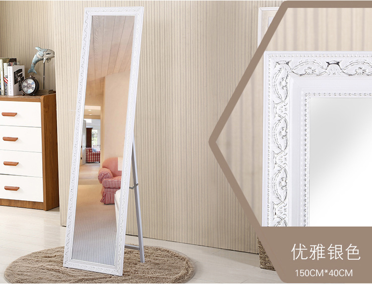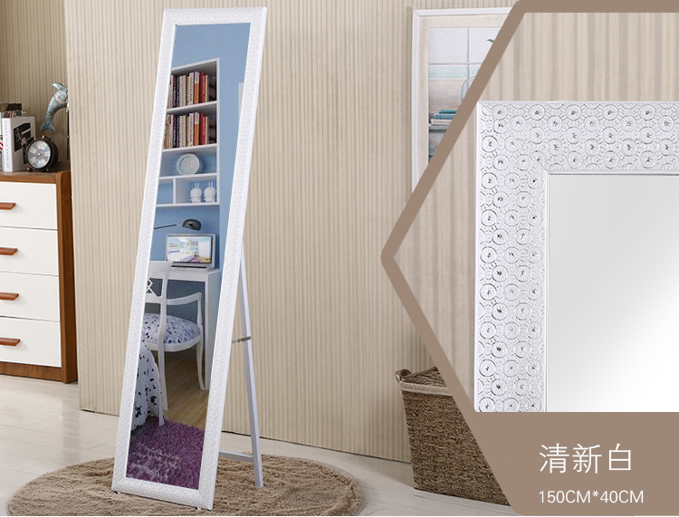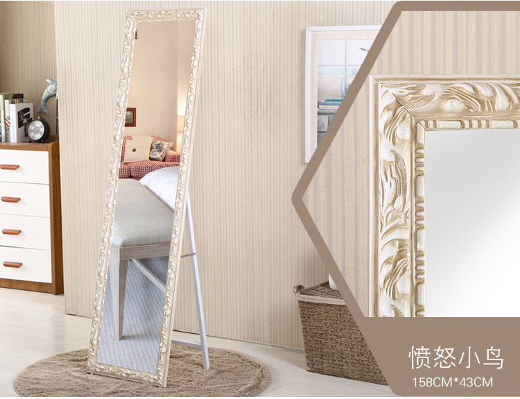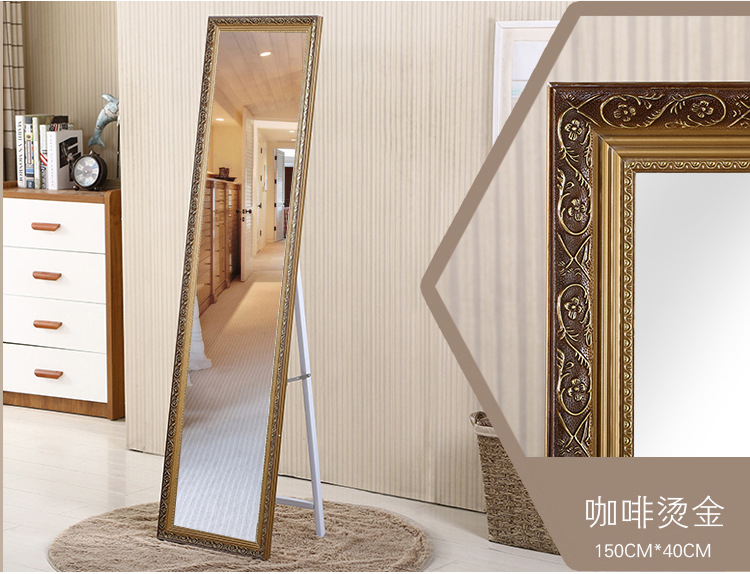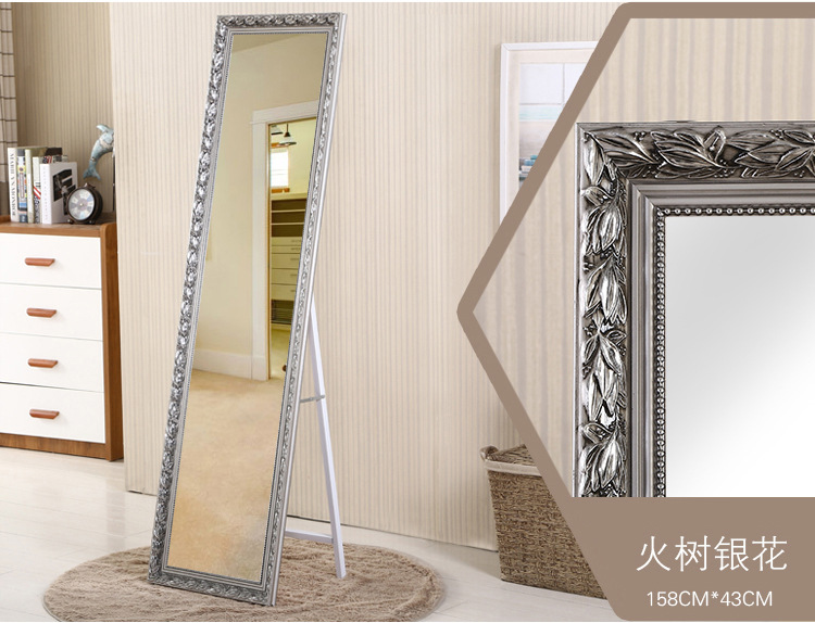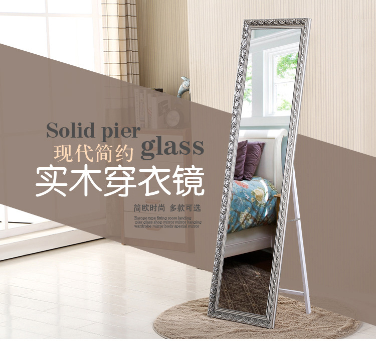 美汇特供:欧式实木穿衣镜子 落地壁挂两用全身镜服装店试衣镜