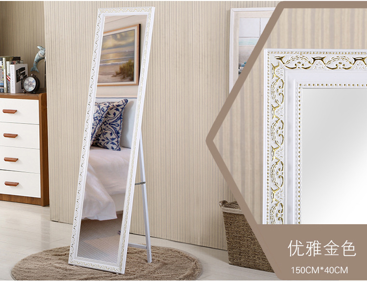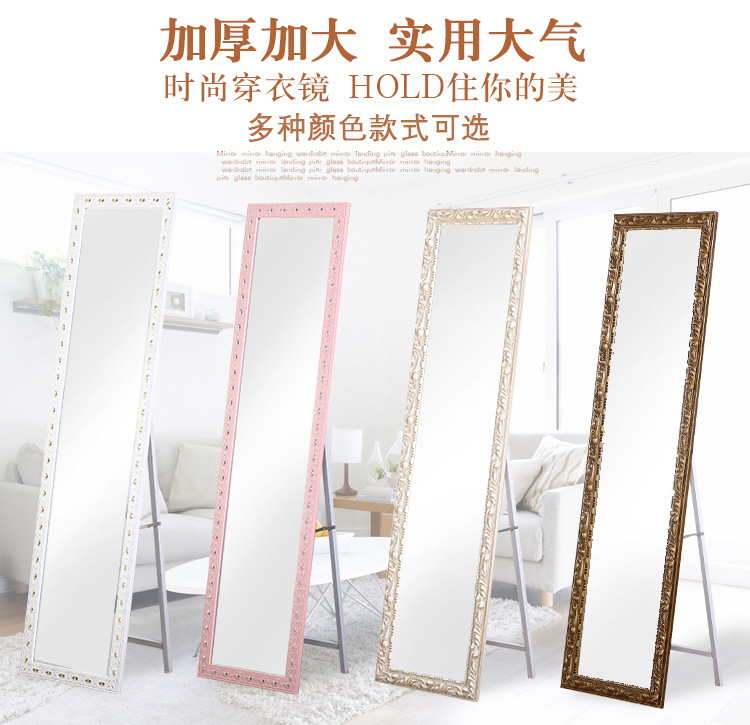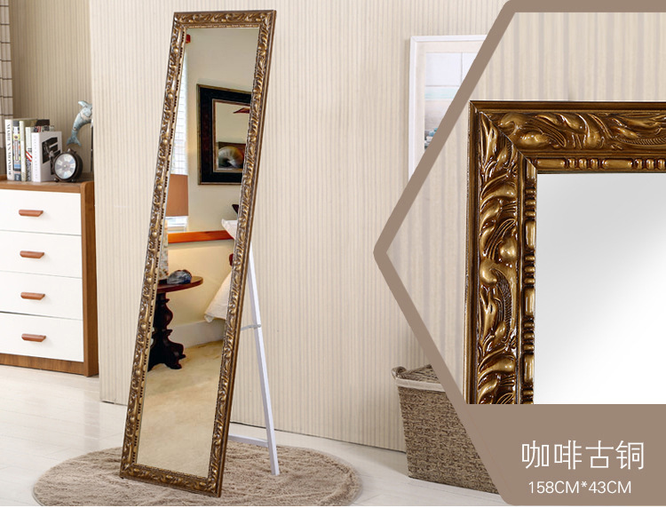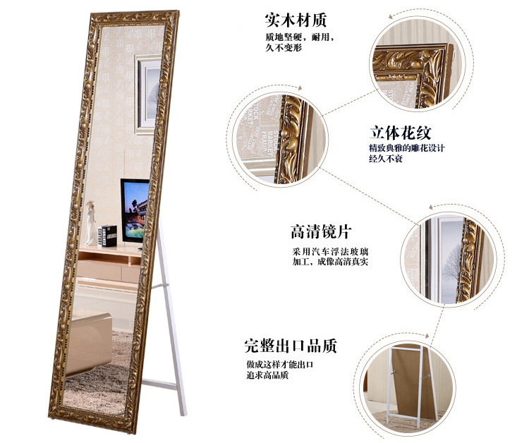美汇特供:实木欧式雕花试衣镜全身落地镜服装店商场显瘦穿衣镜