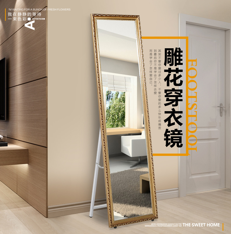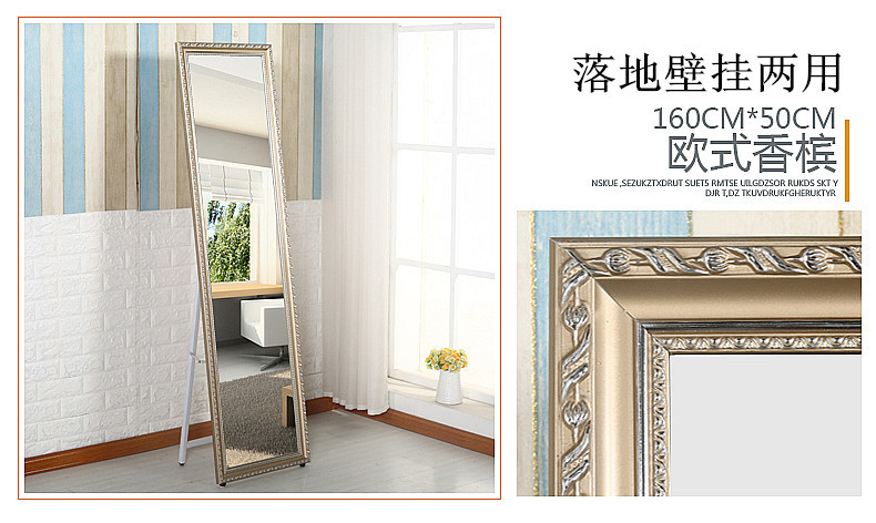 美汇特供:落地壁挂全身镜卧室家具商场服装店试衣镜欧式实木穿衣镜