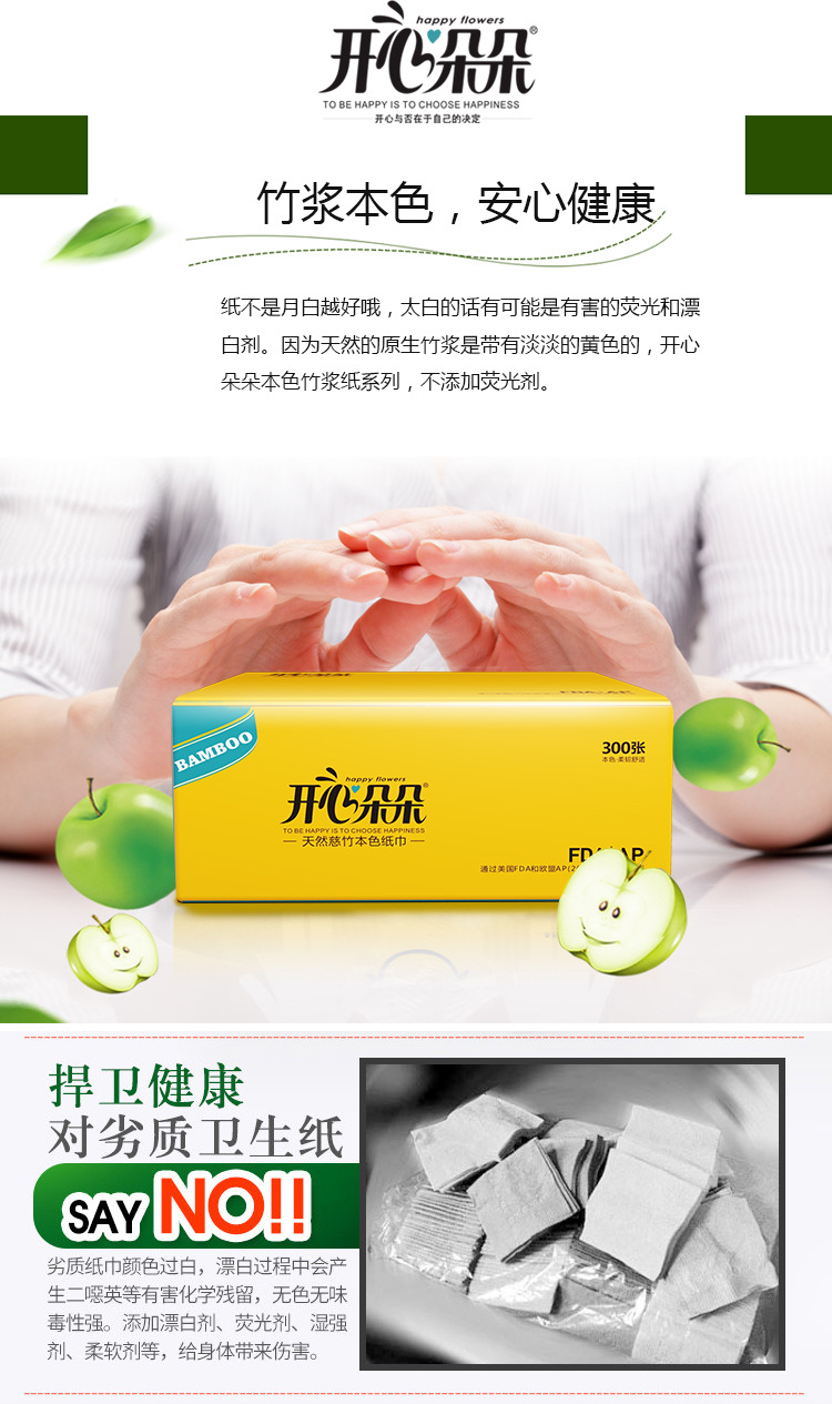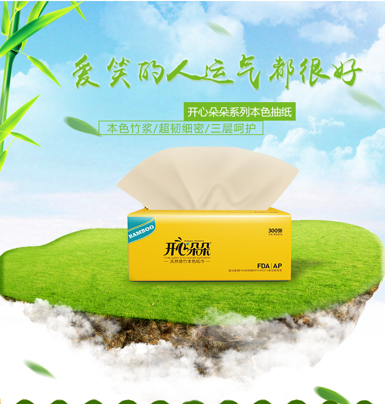 美汇特供:开心朵朵本色10包300张135型餐巾纸面巾纸