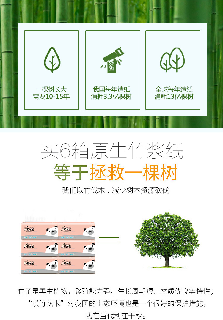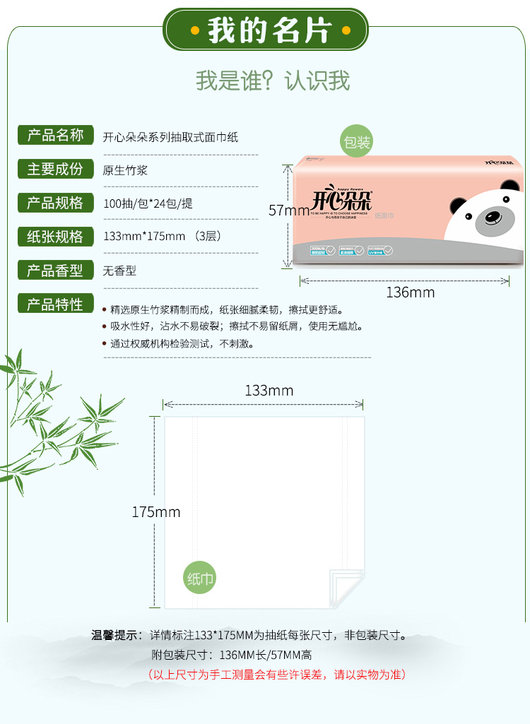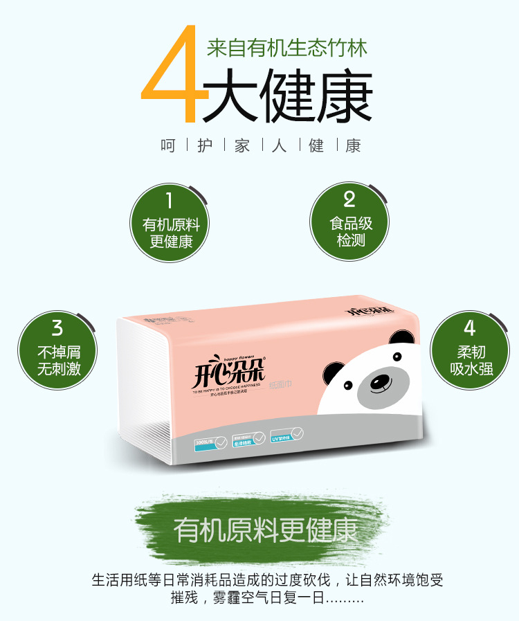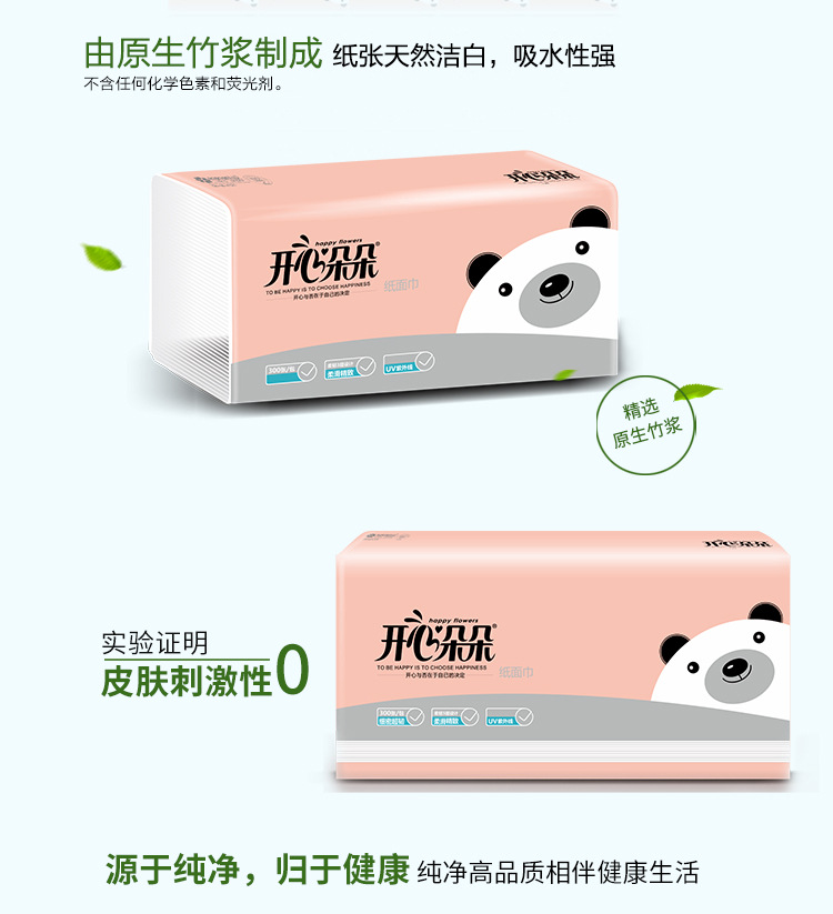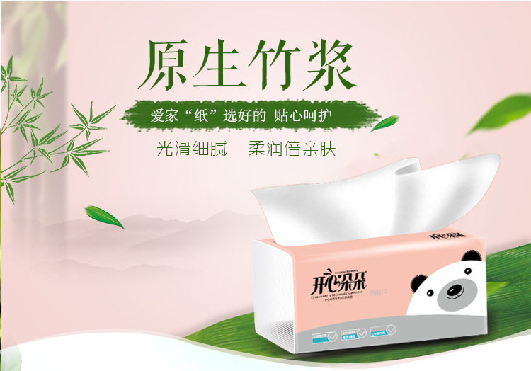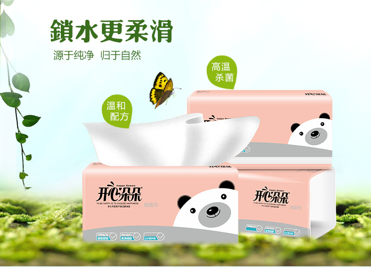 美汇特供:开心朵朵竹浆抽纸巾整箱24包抽家用抽取式面巾纸餐巾纸