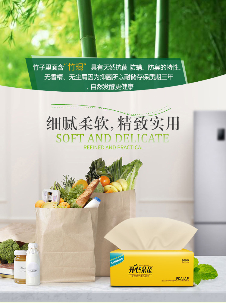 美汇特供:开心朵朵家用抽纸20包/箱 纸巾竹纤维安全环保健康卫生纸