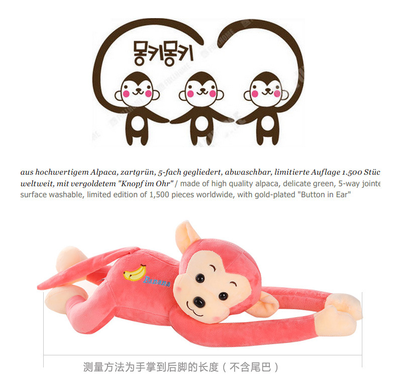 美汇特供:新品毛绒玩具猴子公仔可爱长臂猴娃娃水晶超柔吊猴抱枕生日礼物