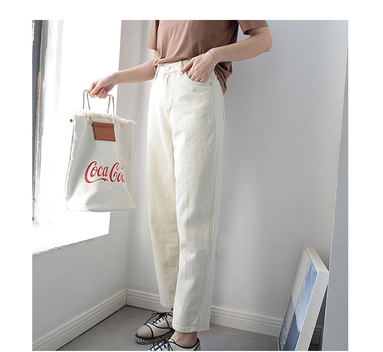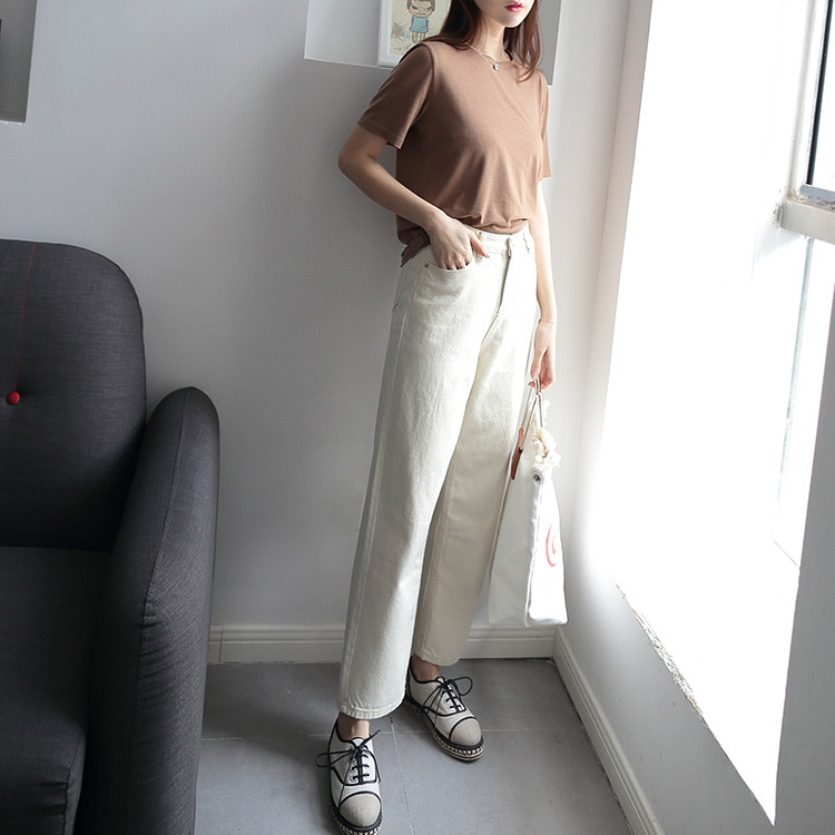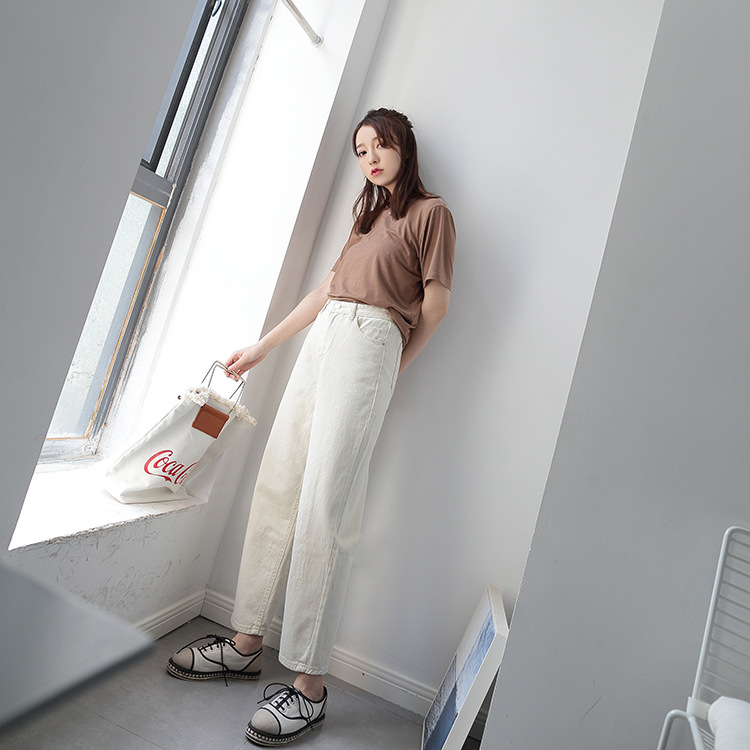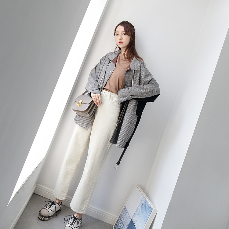 美汇特供:A2A3新款韩版米白阔腿牛仔裤2018春季直筒九分裤女