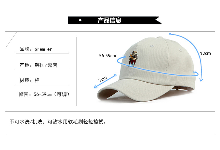 美汇特供:premier帽子进口韩国正品图案时尚棒球帽刺绣韩版鸭舌帽