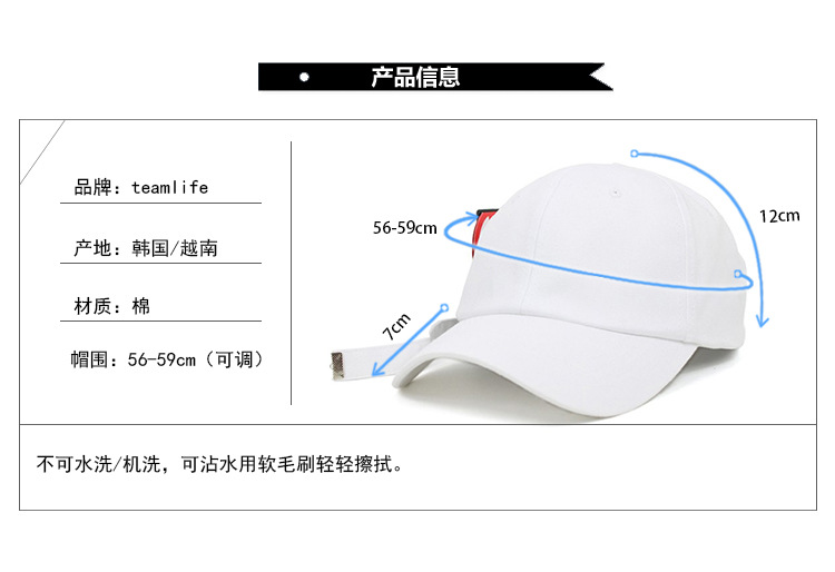 美汇特供:韩国进口正品teamlife鸭舌帽权志龙明星同款长带子黑色光身棒球帽