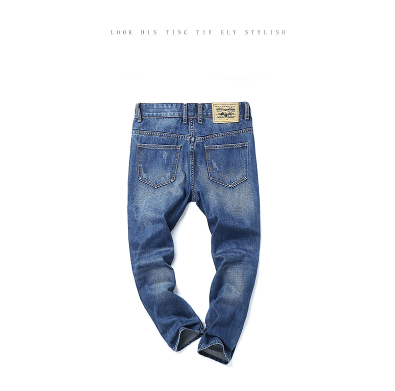 美汇特供:韩路男装 牛仔裤男九分裤破洞款宽松休闲裤水洗嘻哈裤