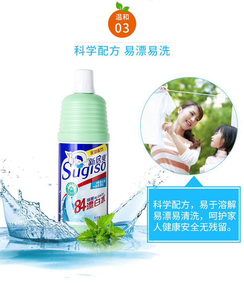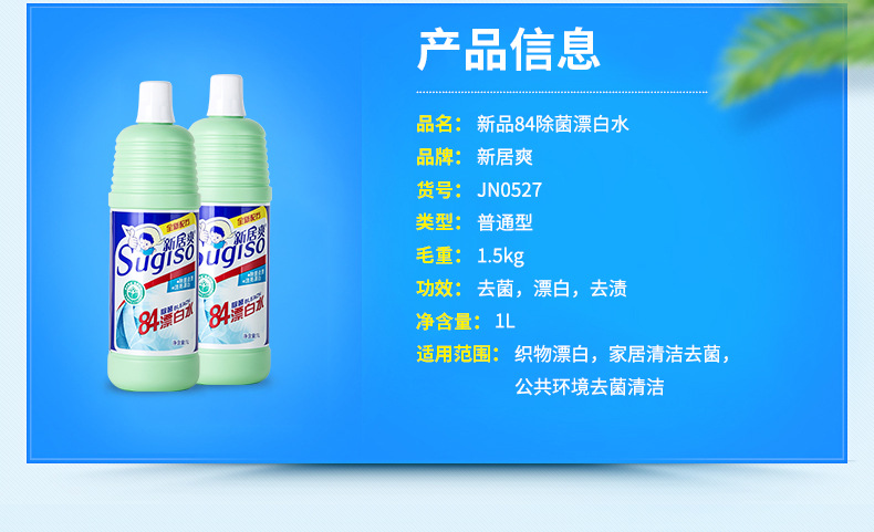 美汇特供:新居爽去渍亮白漂白液1L 衣物漂白剂去色剂增白剂去污漂白水
