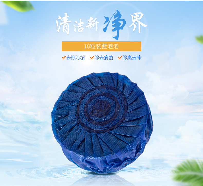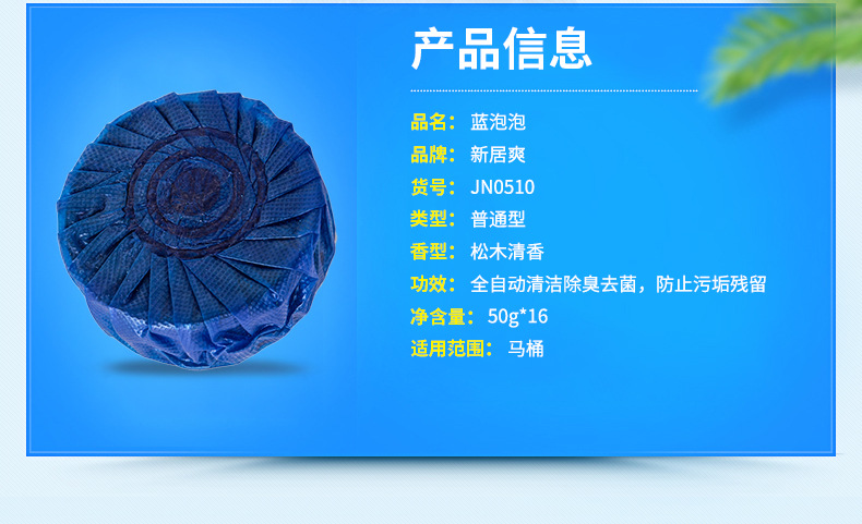 美汇特供:新居爽马桶自动清洁剂盒装蓝泡泡洁厕剂厕所除臭尿垢液16粒/盒*2盒