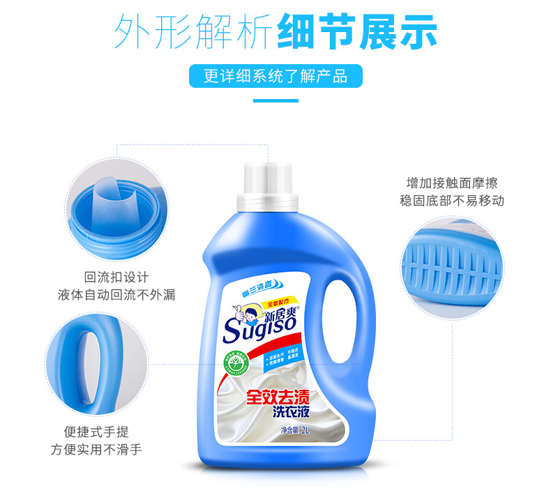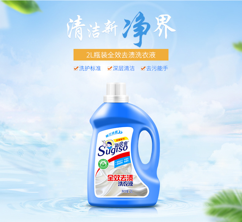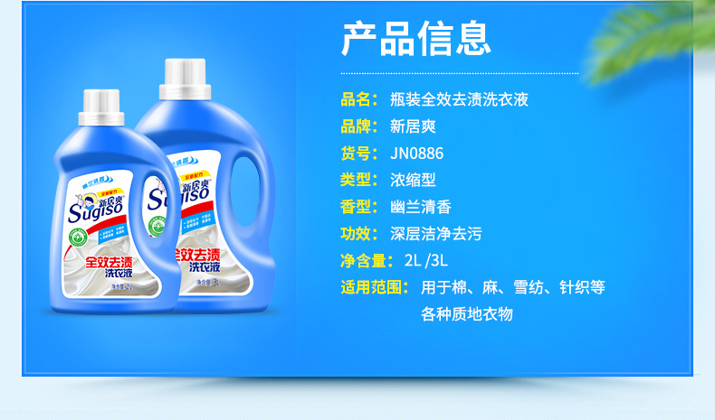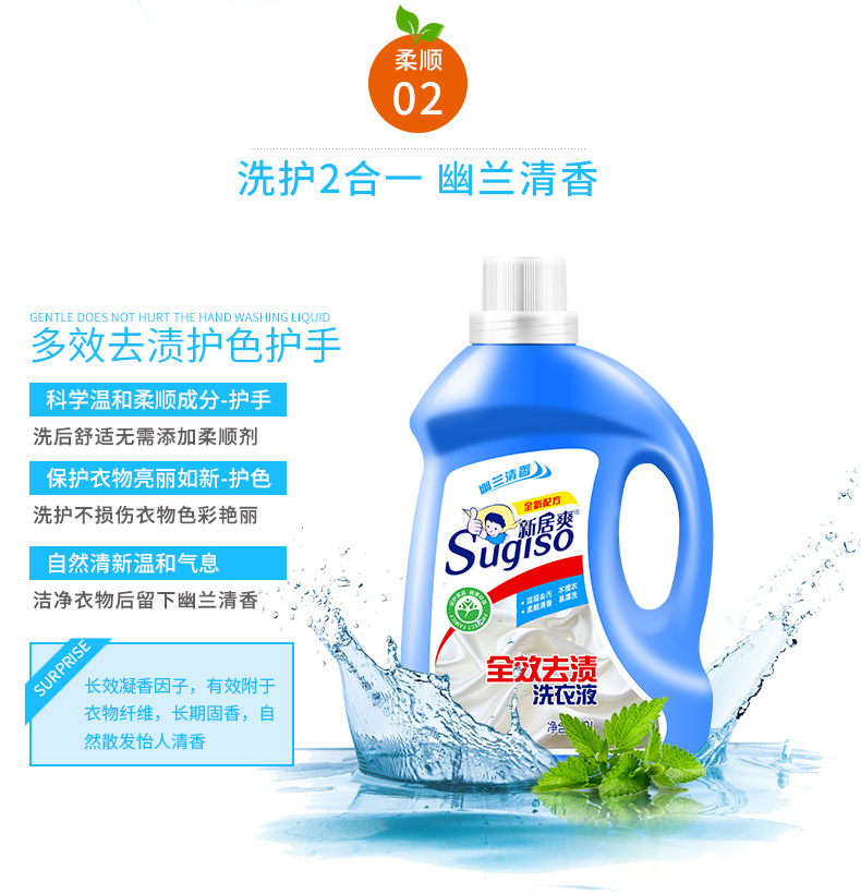 美汇特供:新居爽家庭装幽兰清香型洗衣液色2kg 不含荧光增白剂低泡易漂护