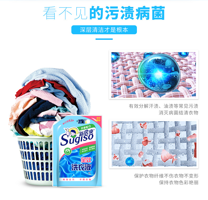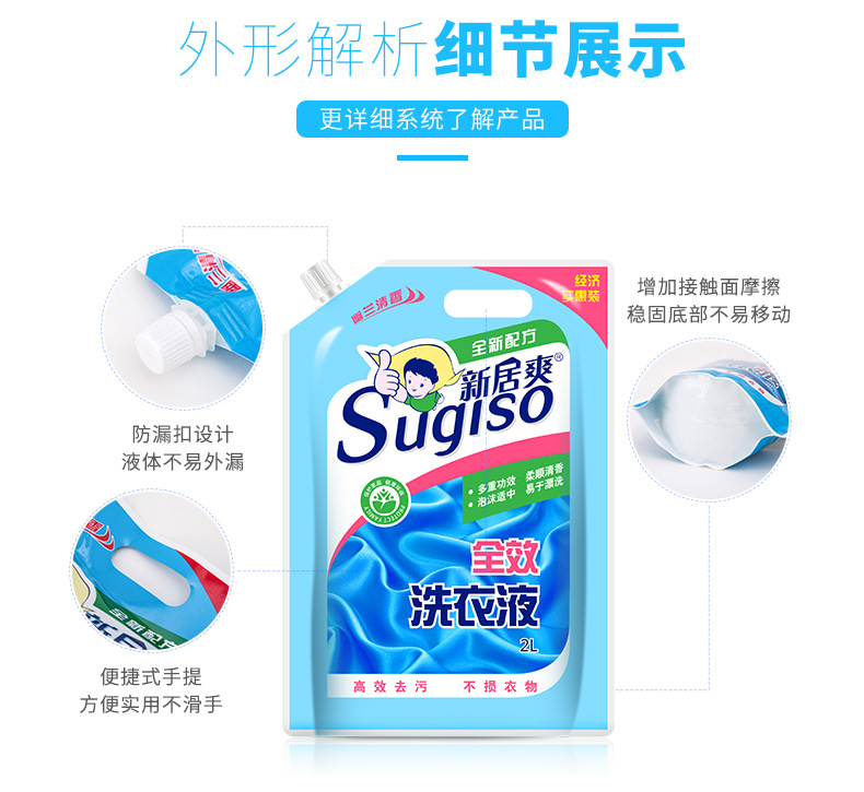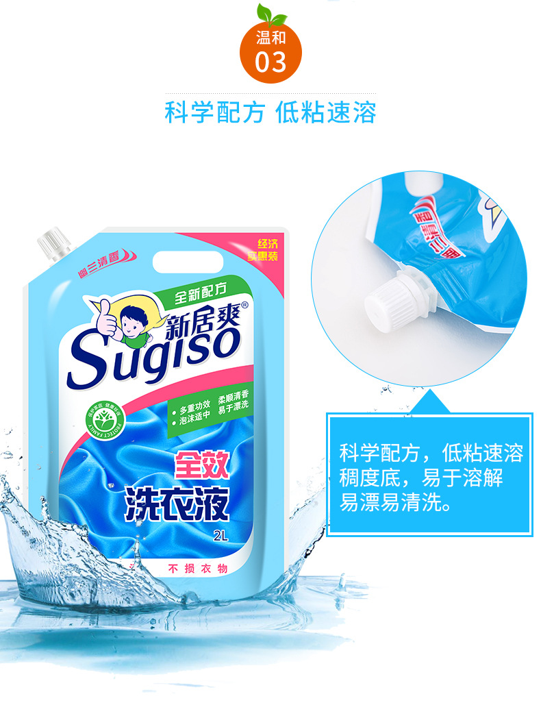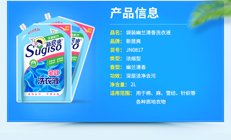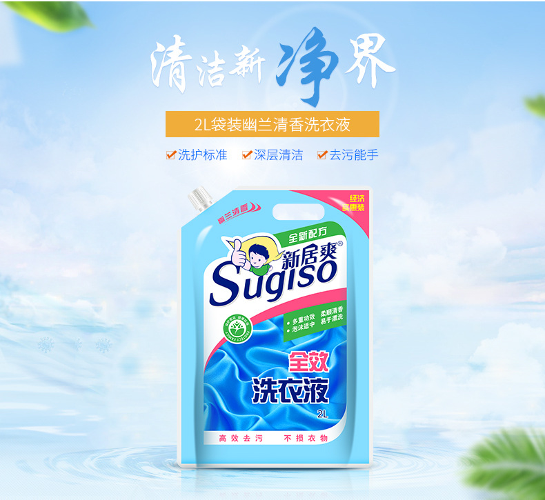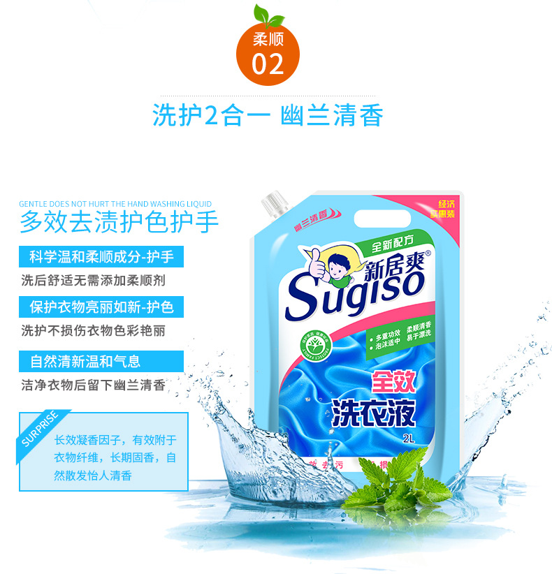 美汇特供:新居爽幽兰清香洗衣液2L袋装 无荧光增白剂易漂洗