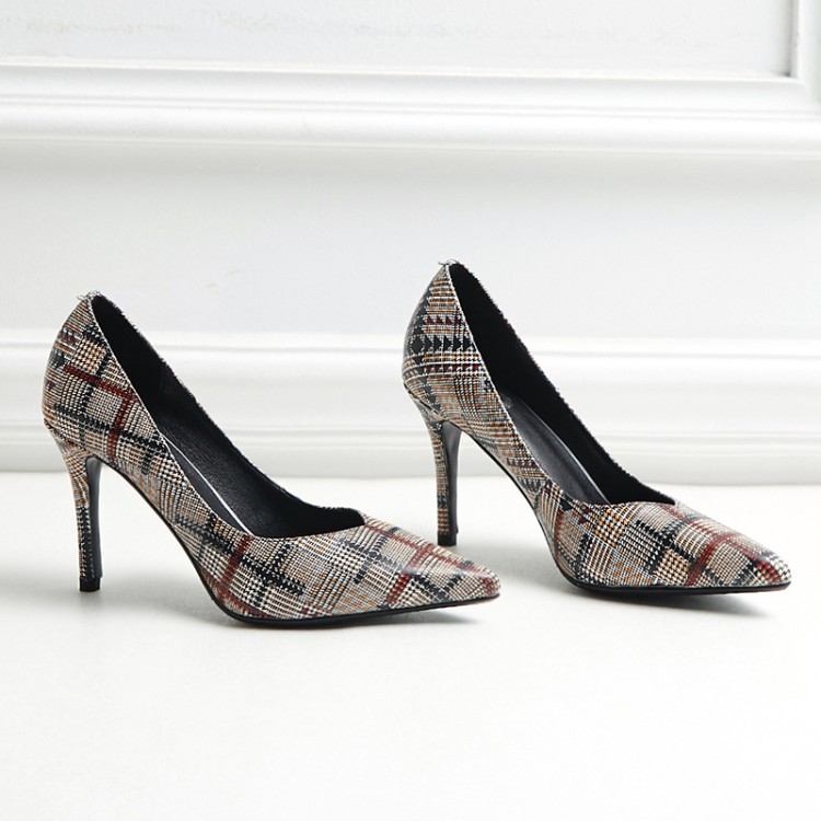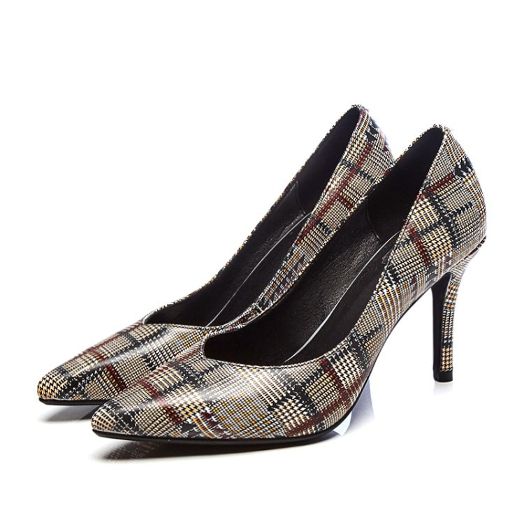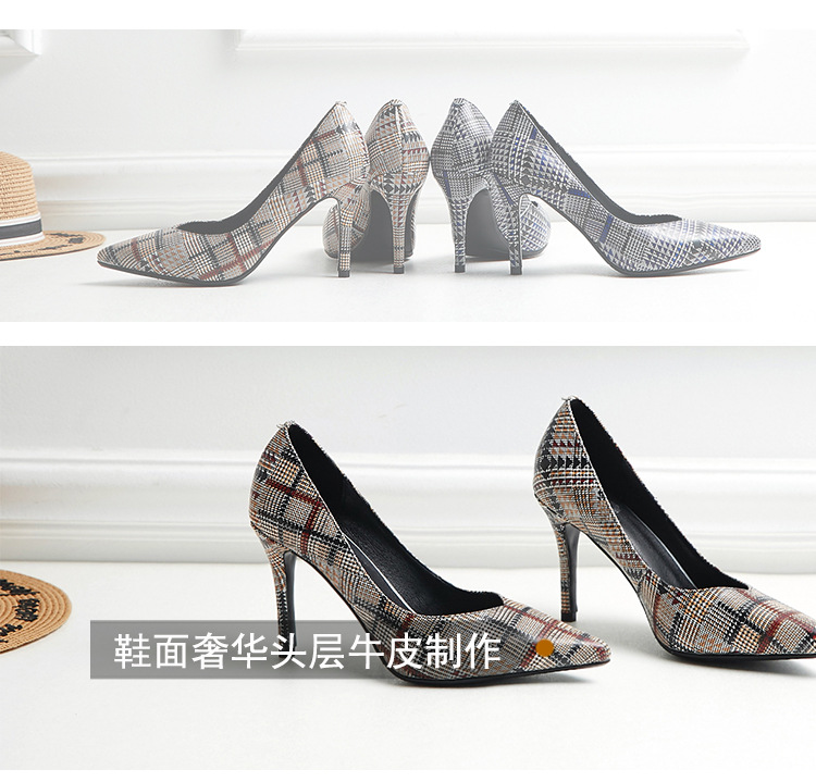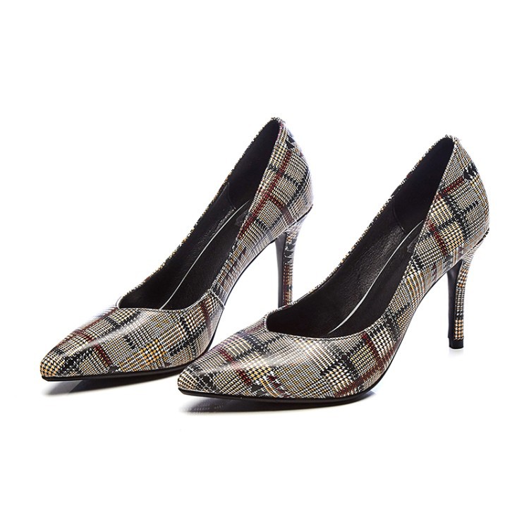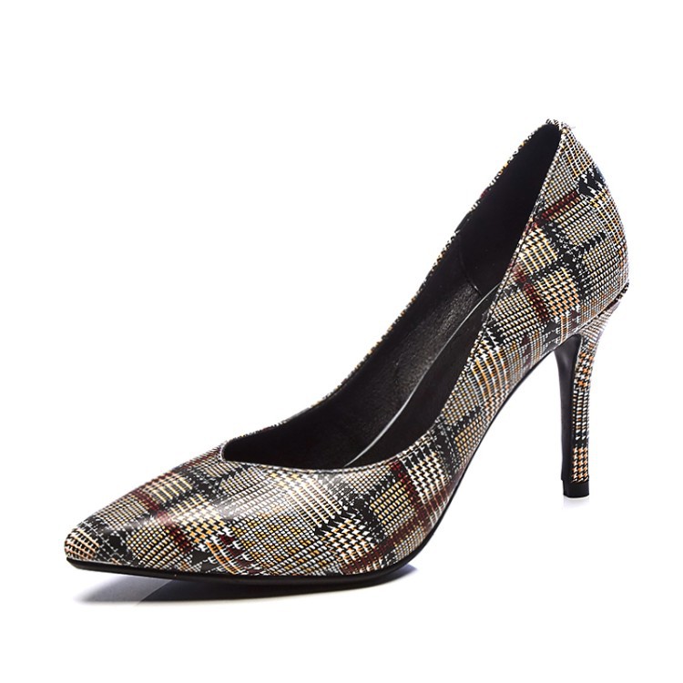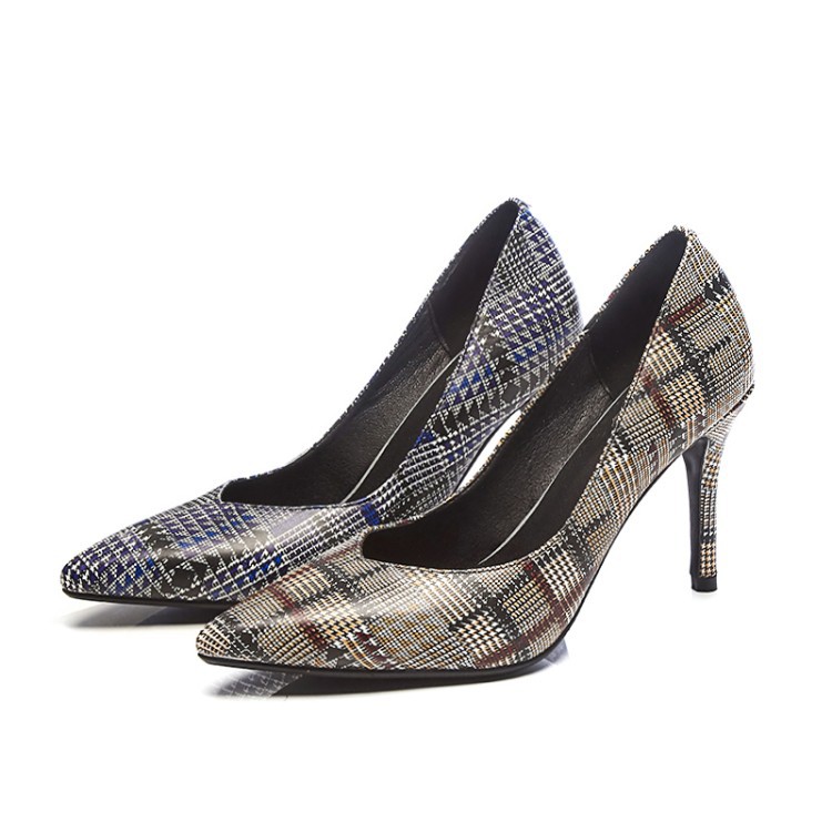 美汇特供:欧美时尚尖头细跟高跟鞋2018春夏流行花纹牛皮真皮包跟新款单鞋