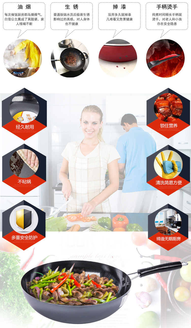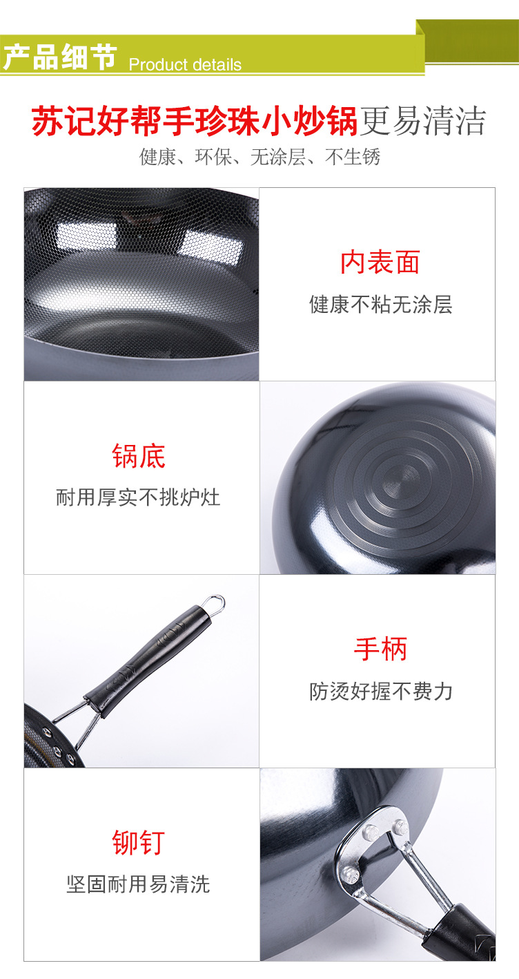 美汇特供:苏记好帮手热销健康环保家用铁锅无涂层平底锅
