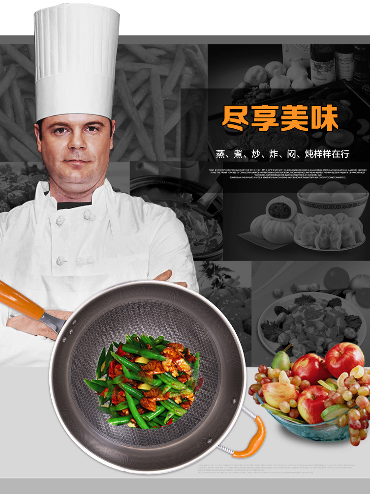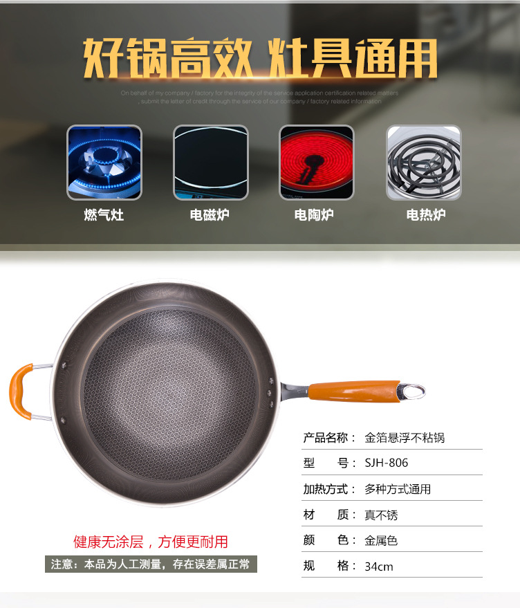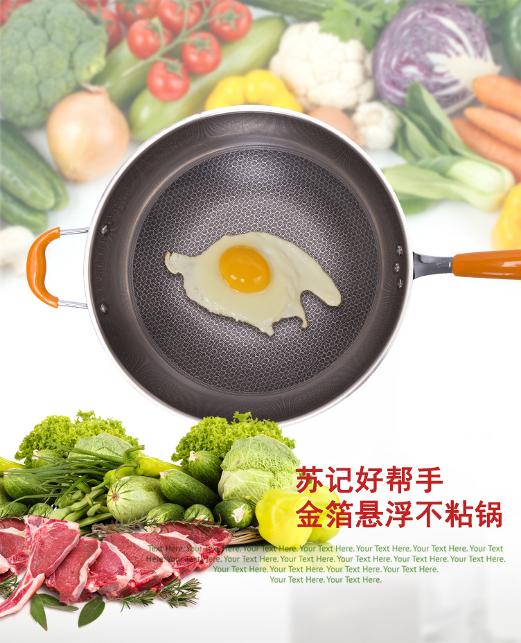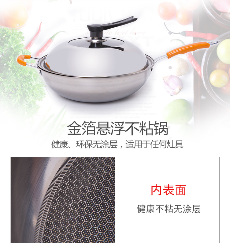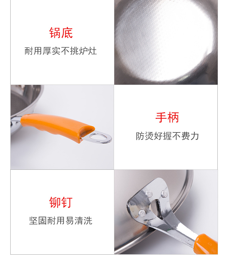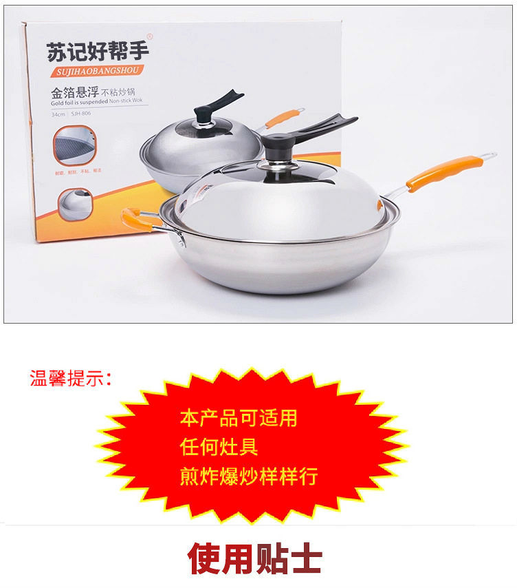 美汇特供:苏记好帮手厨具真不锈炒锅无涂层不粘平底锅 爆炒铲电磁炉通用