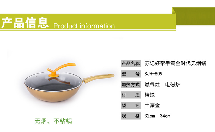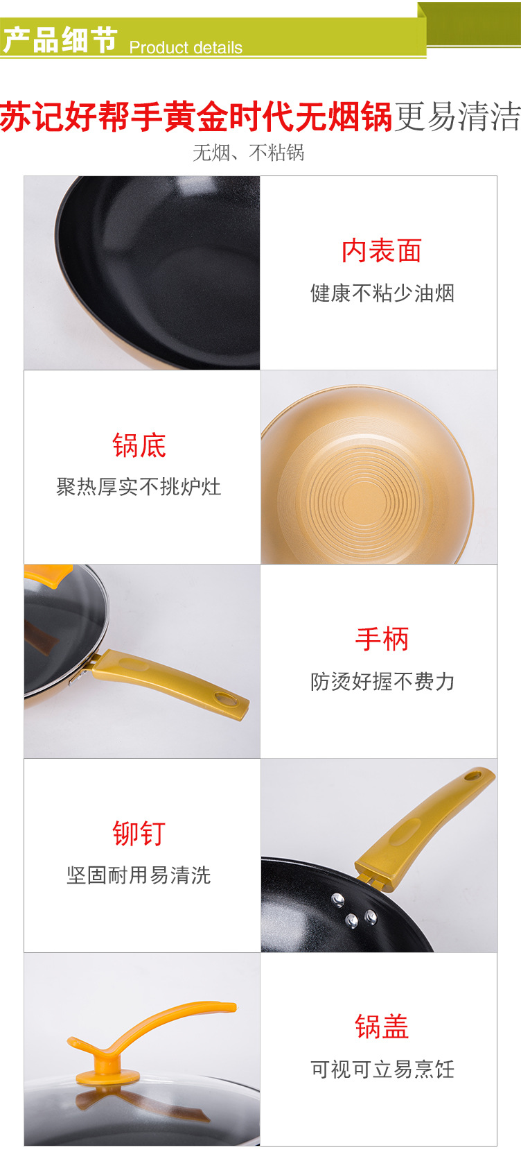 美汇特供:苏记好帮手2018新款黄金时代无烟炒锅 不粘锅 通用平底锅
