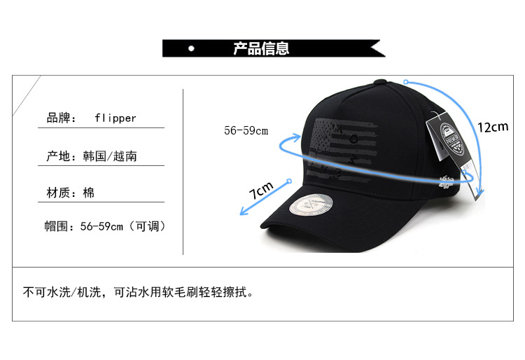 美汇特供:flipper韩国进口新品春夏鸭舌帽纯棉透气棒球帽时尚百搭弯檐帽