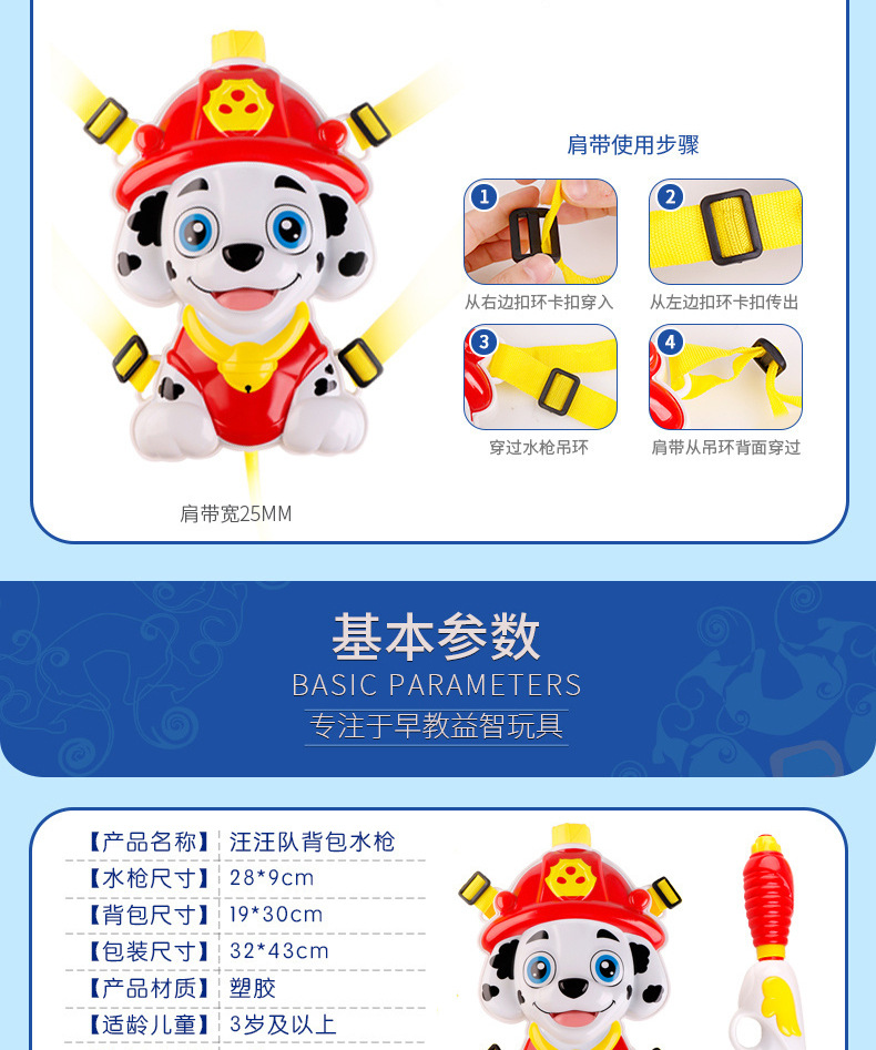 美汇特供:新品夏季沙滩玩具 儿童戏水汪汪狗狗大号卡通造型大容量背包水枪