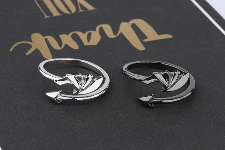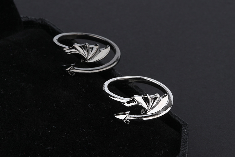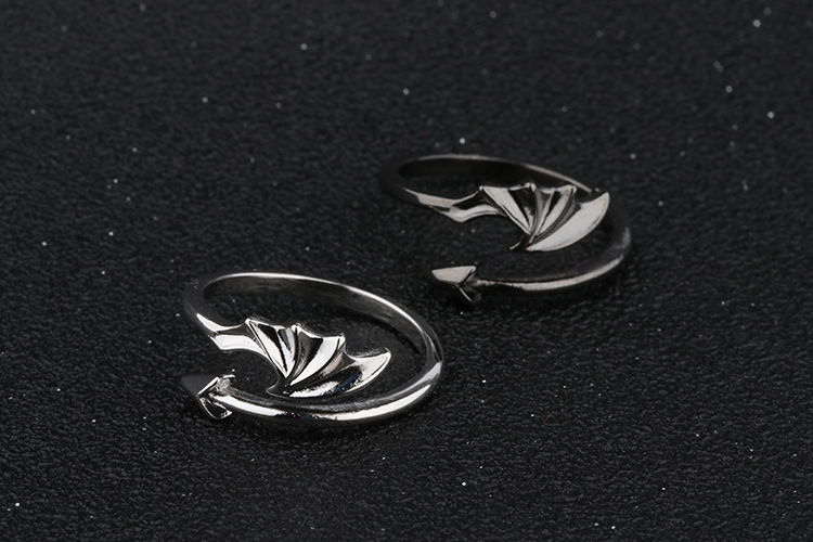 美汇特供:2018新款戒指恶之花恶魔之戒开口黑白情侣对戒新款翅膀指环