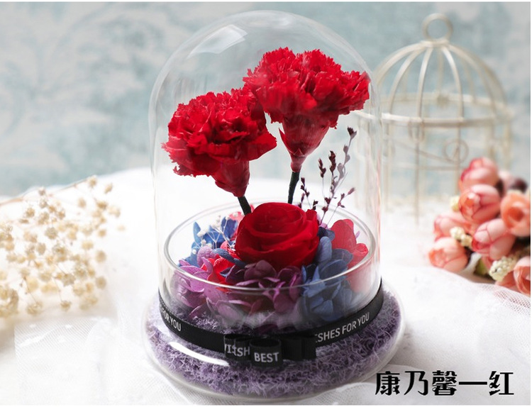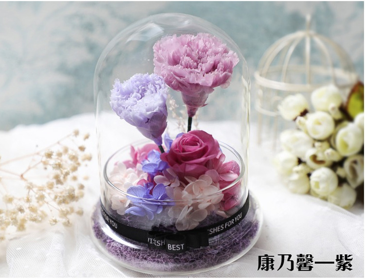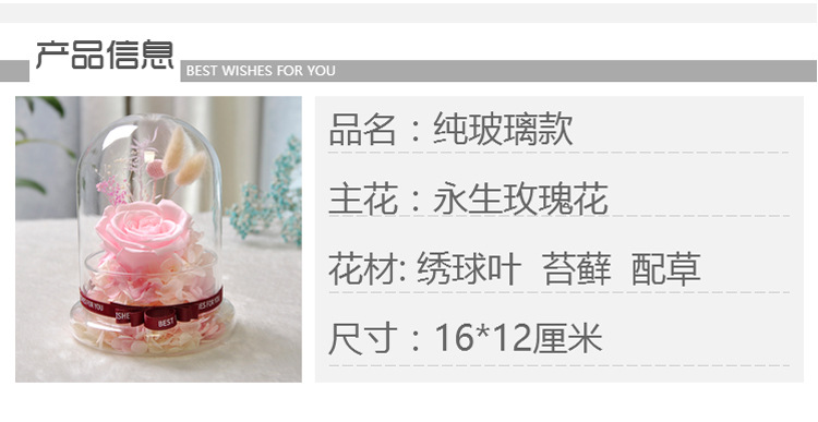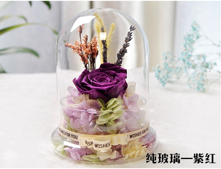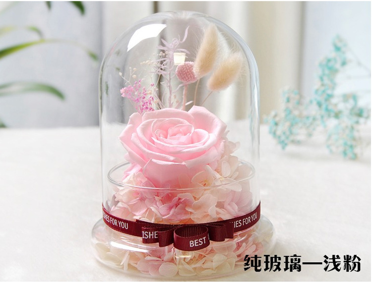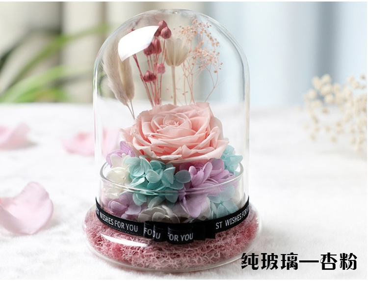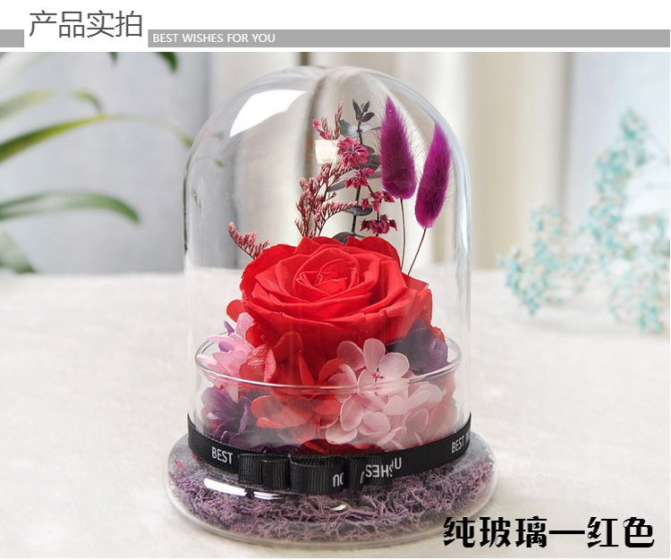 美汇特供:进口永生花玻璃罩礼盒摆件情人节生日DIY礼物保鲜花玫瑰