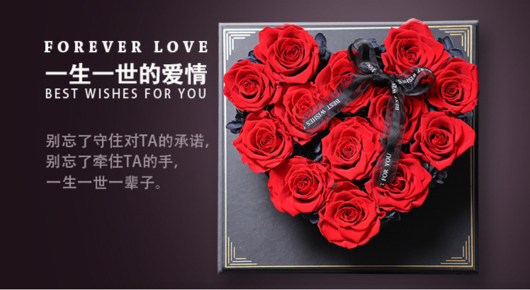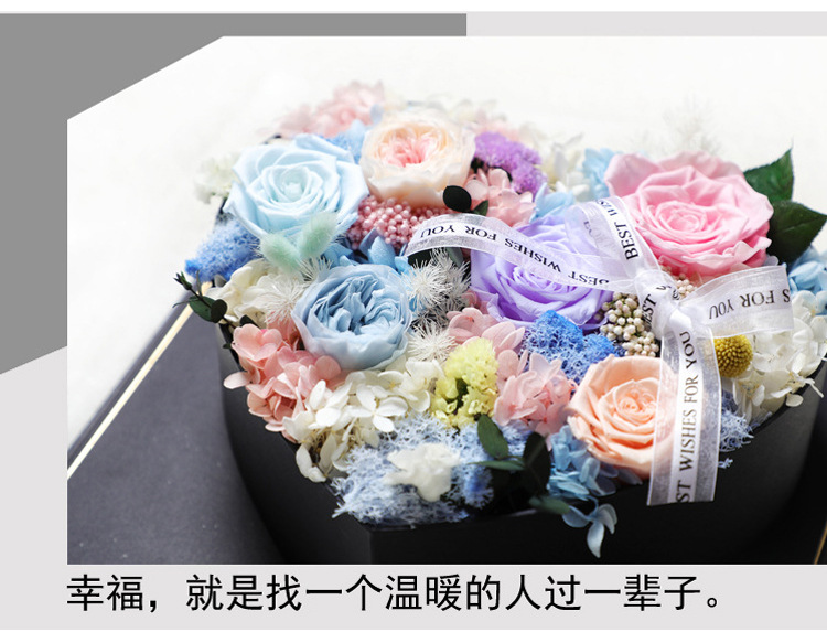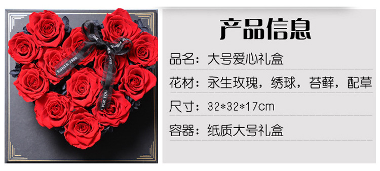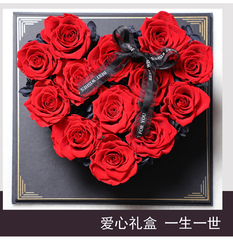 美汇特供:进口永生花创意爱心礼盒摆件七夕情人节礼物生日玫瑰花保鲜花干花