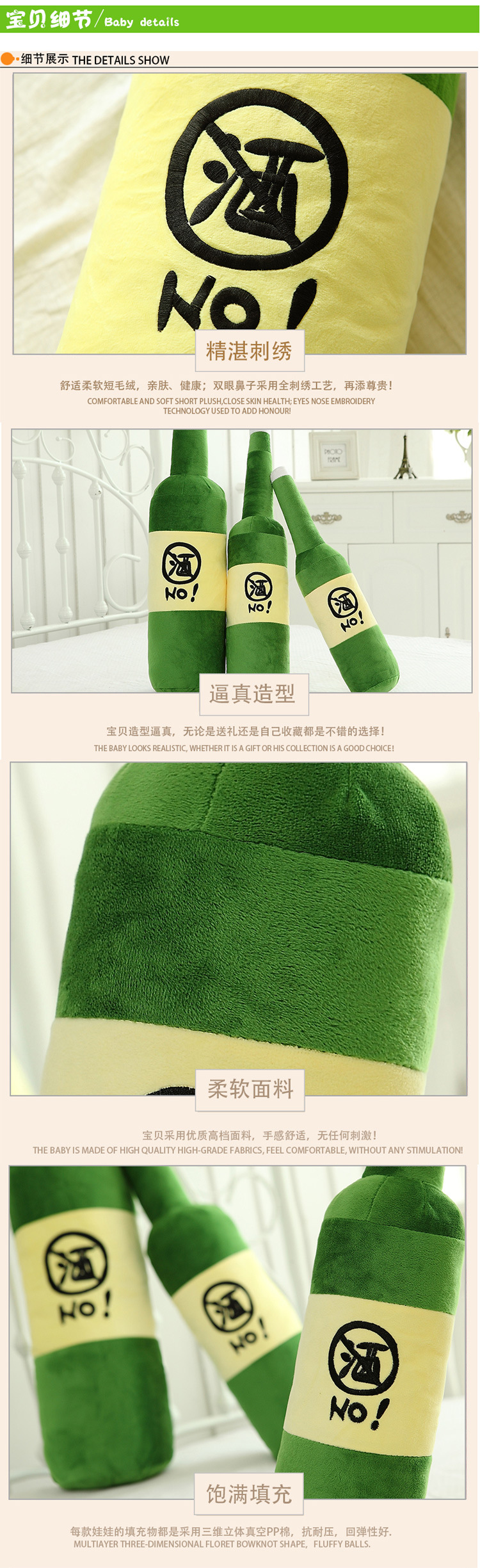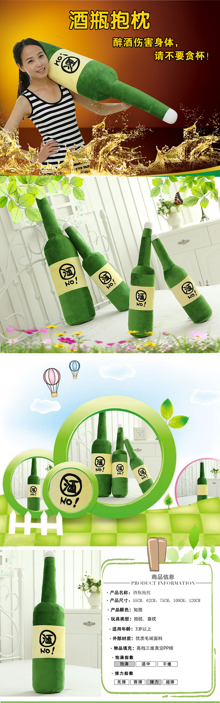 美汇特供:送男生礼物抱枕创意毛绒玩具大号午睡酒瓶靠垫公仔生日定制