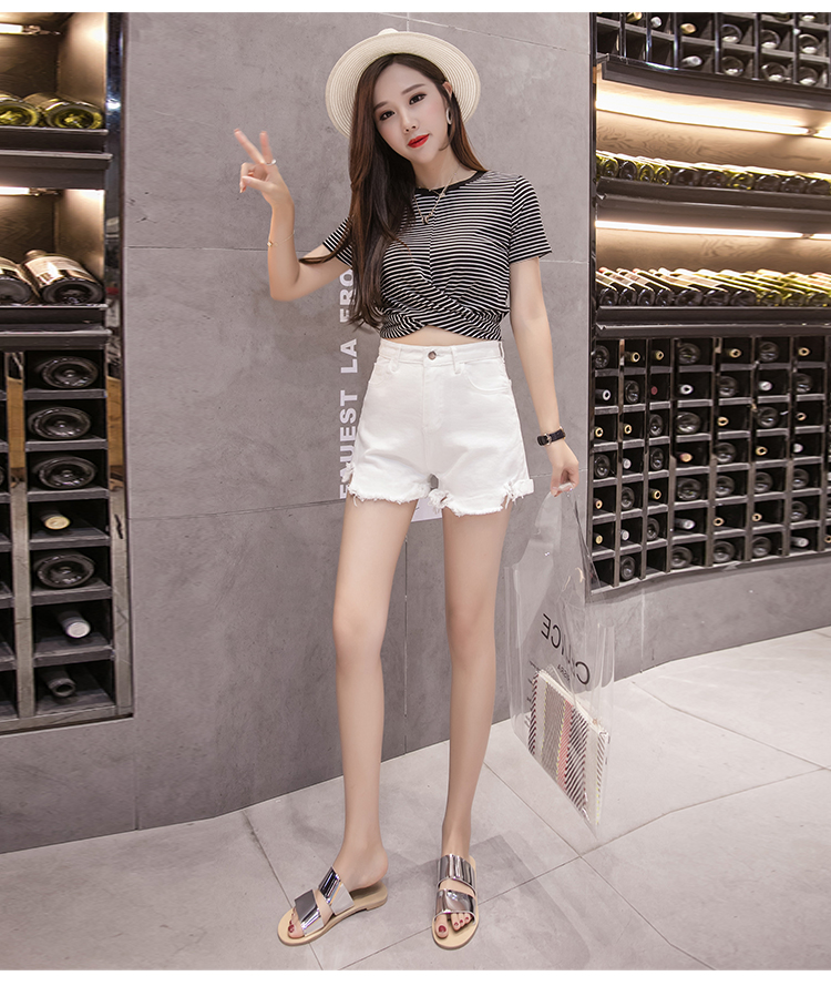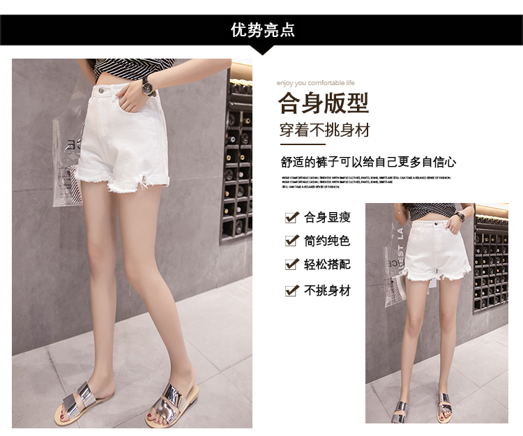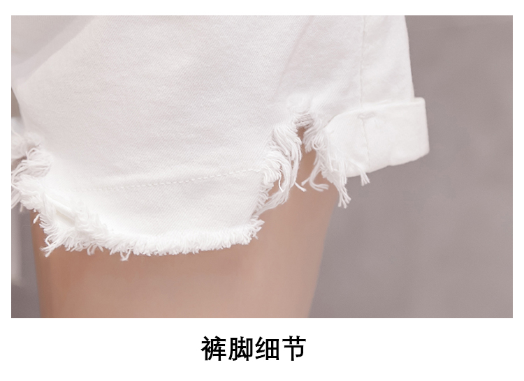 美汇特供:实拍纯白色百搭牛仔裤女破洞韩版高腰不规则毛边阔腿短裤夏