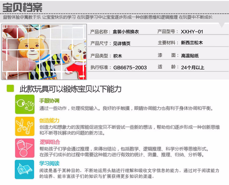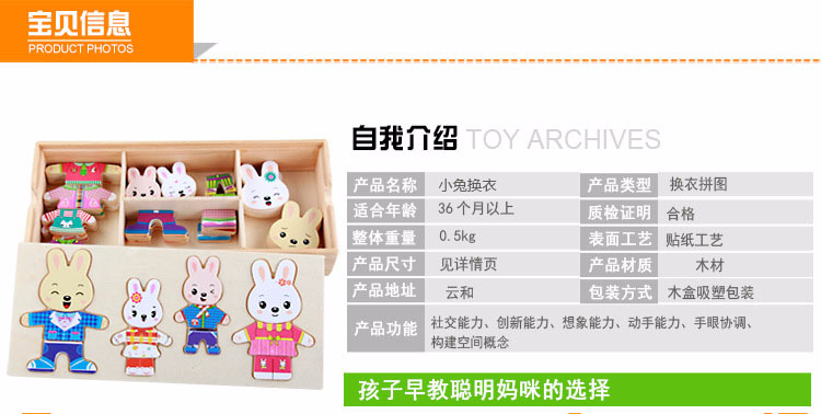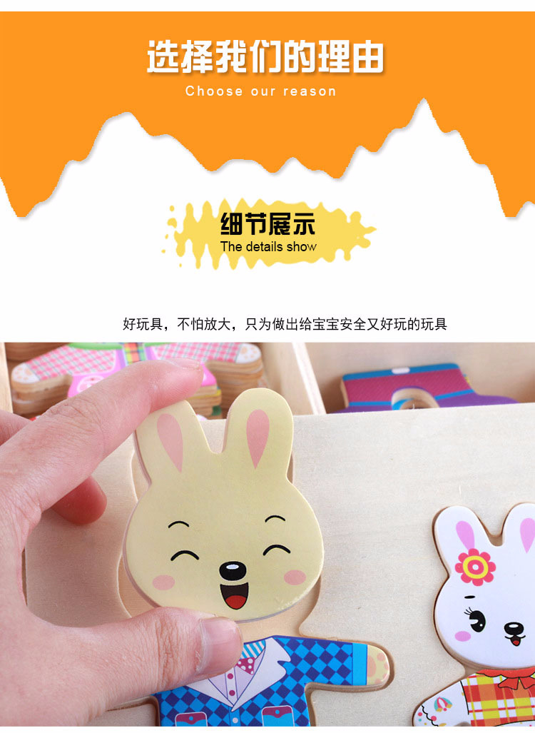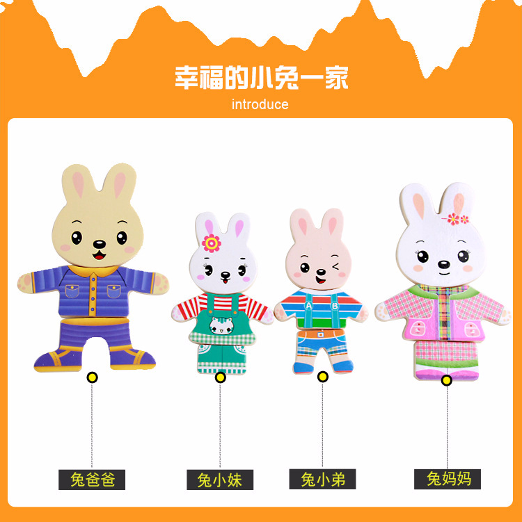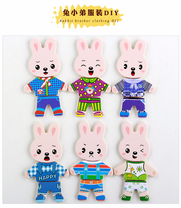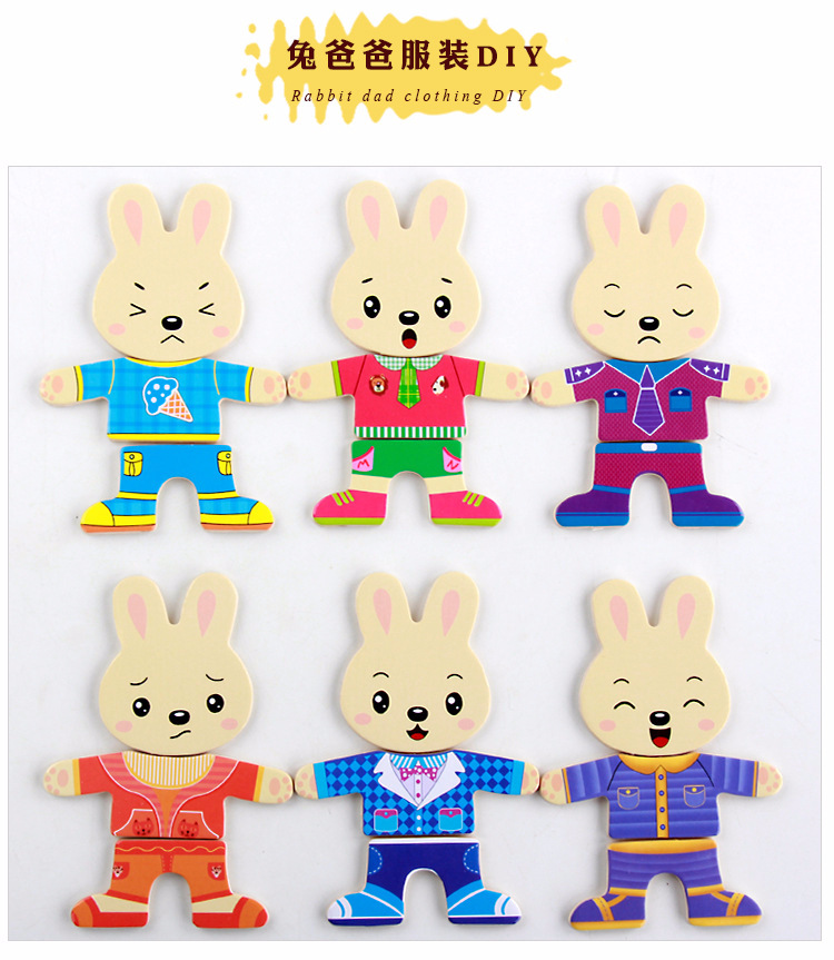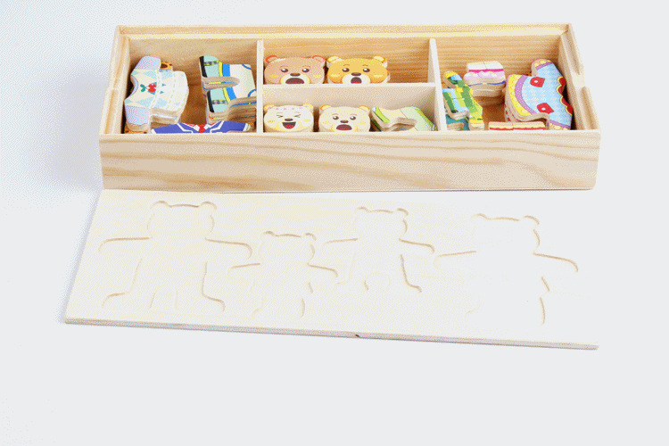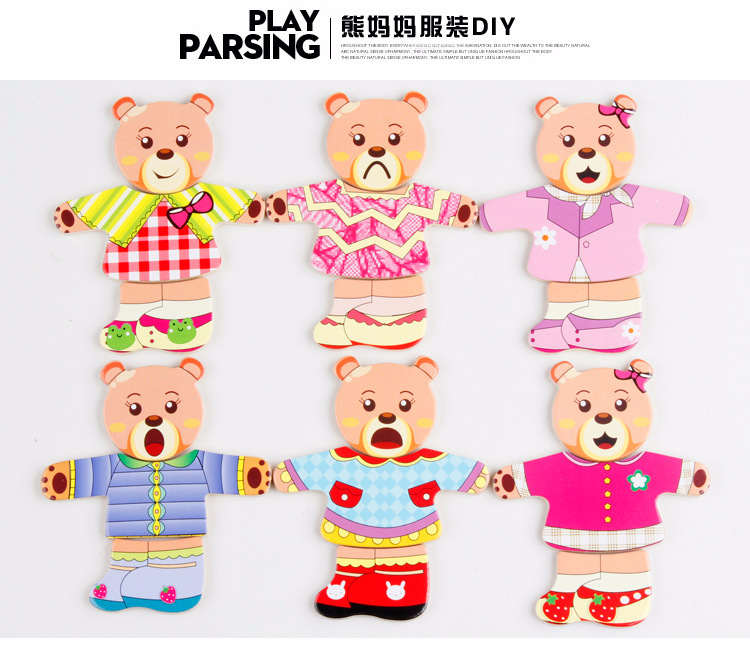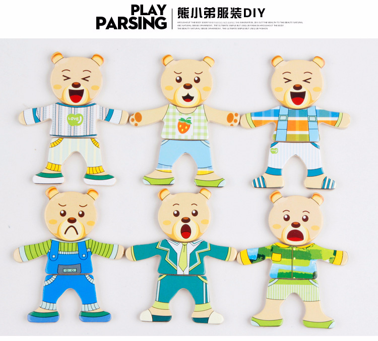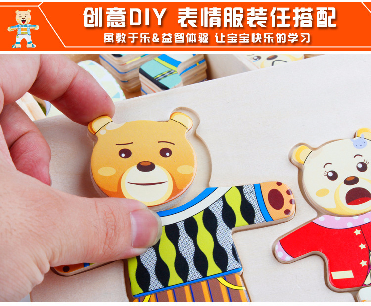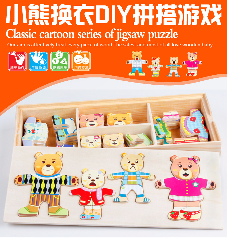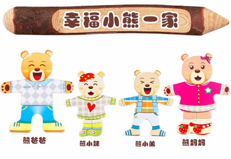 美汇特供:四小熊换衣服木制玩具儿童早教益智玩具拼版