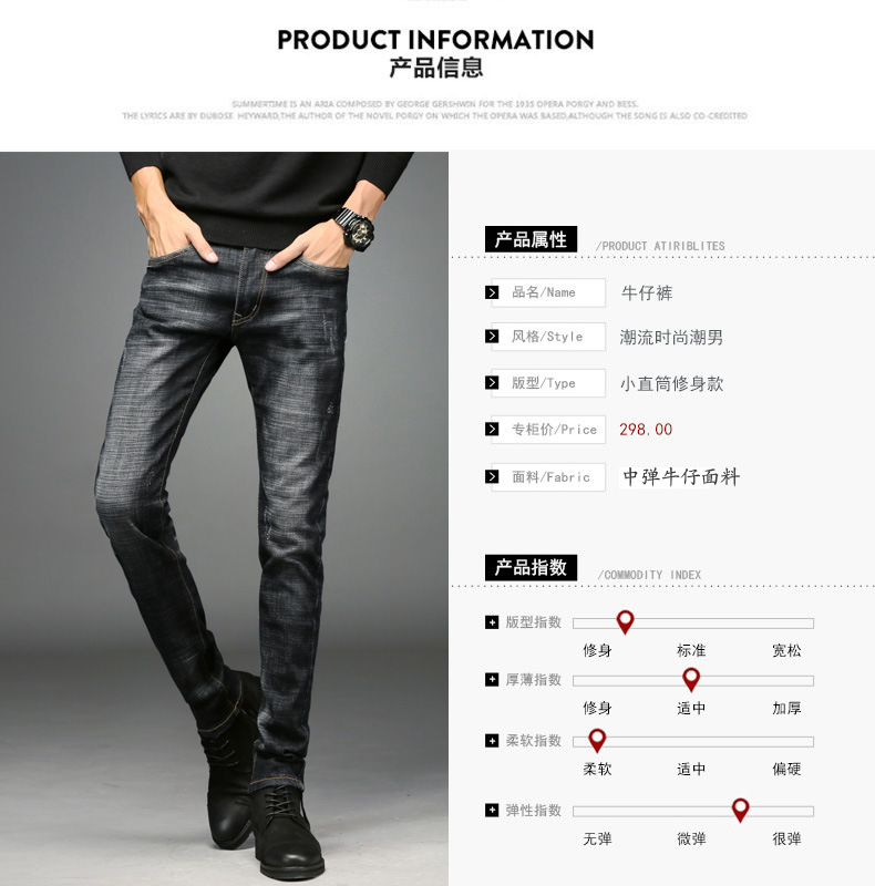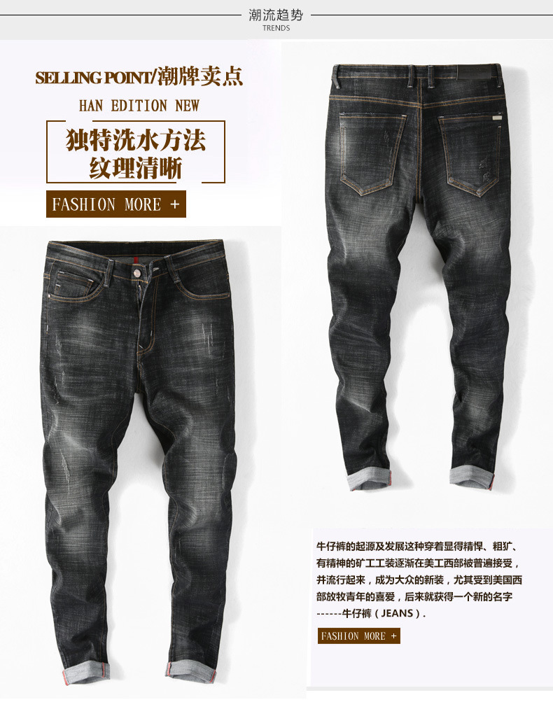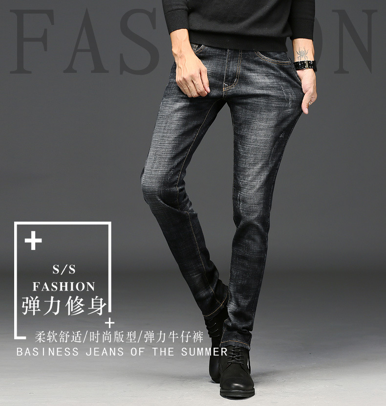 美汇特供:2018夏季新款直筒潮流时尚百搭男式牛仔裤青年日常休闲中腰长裤