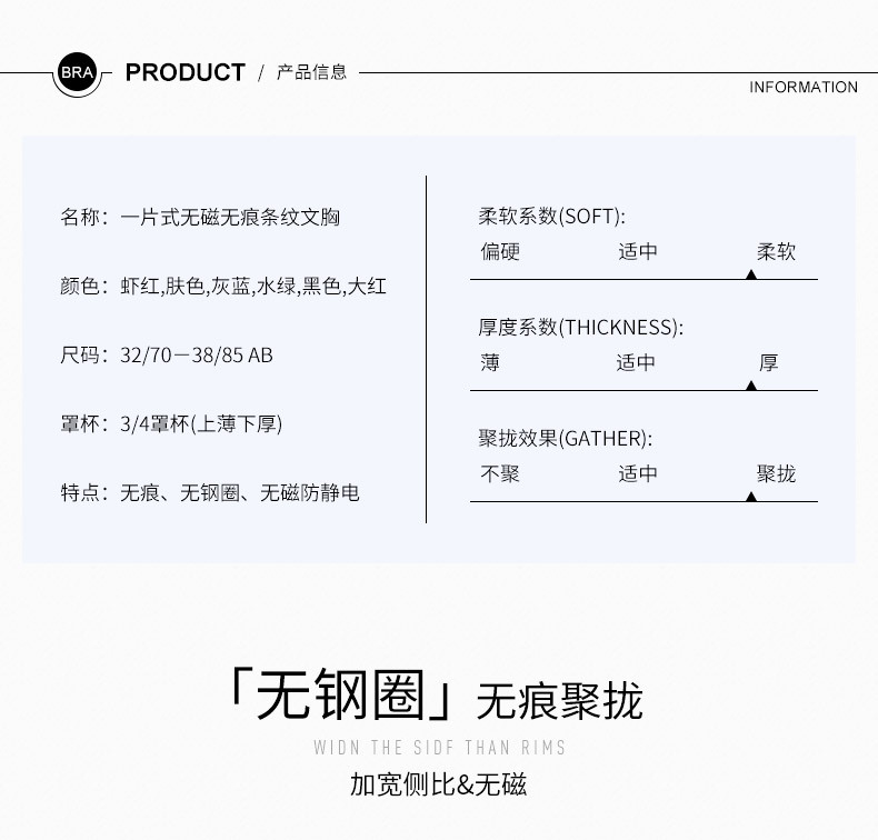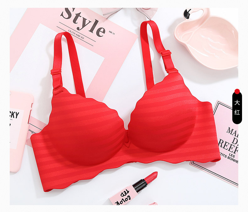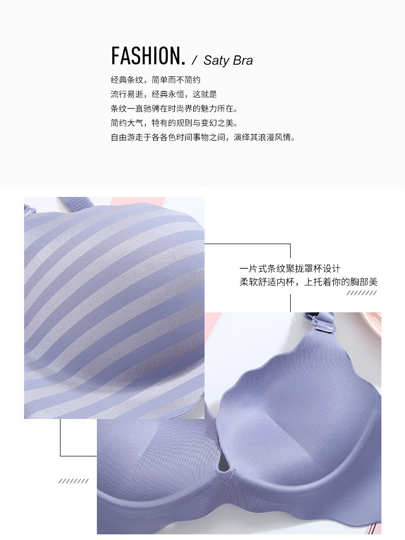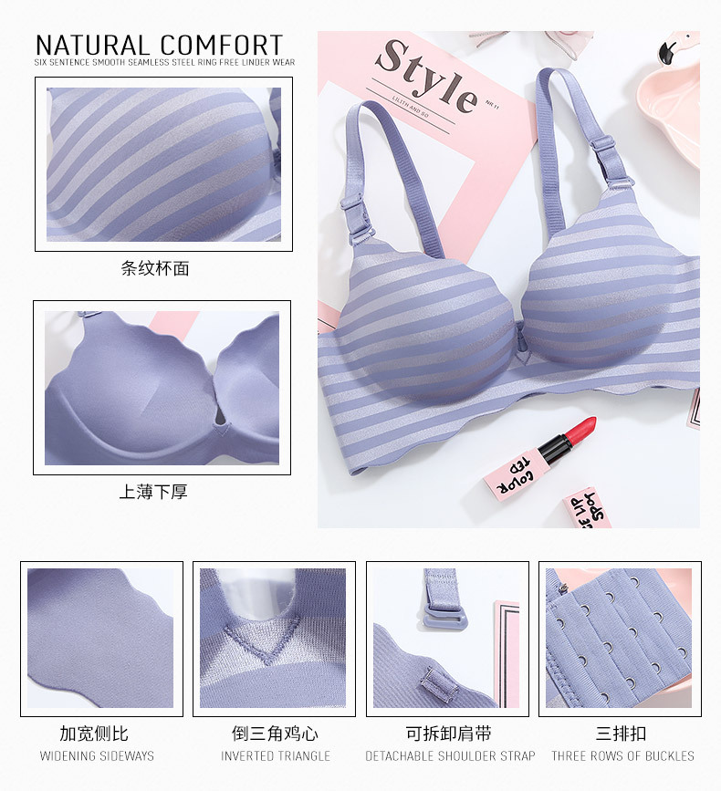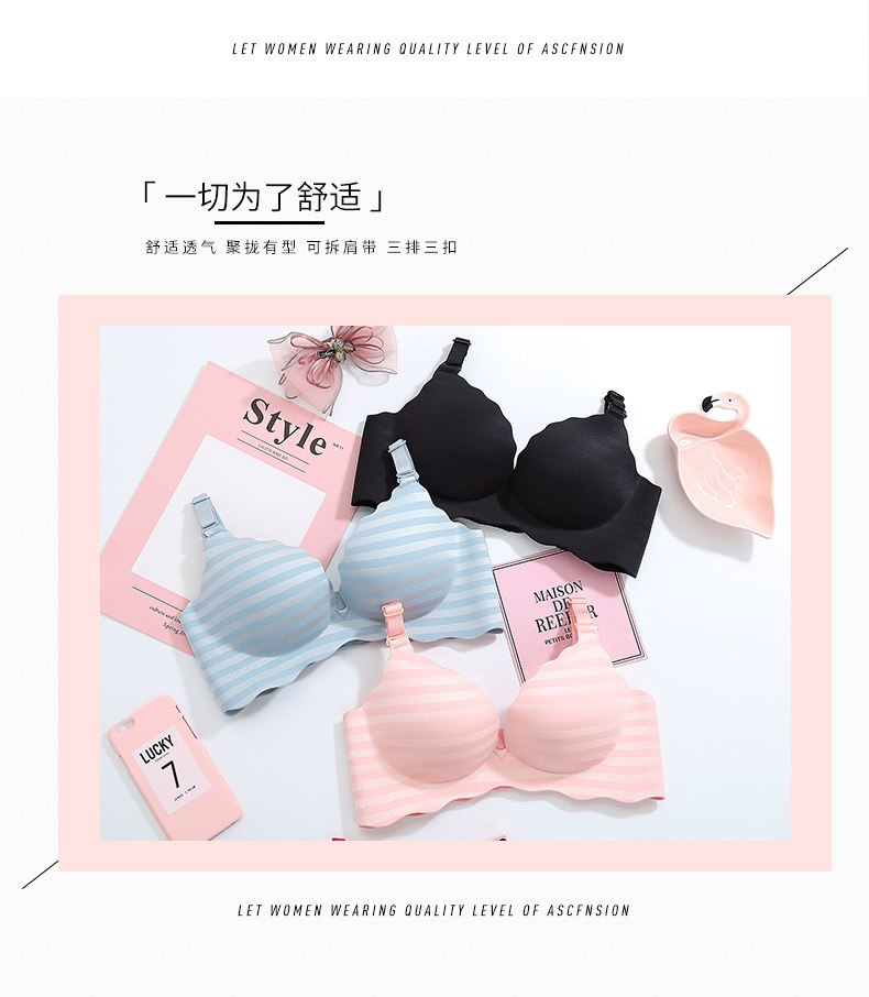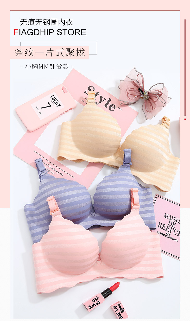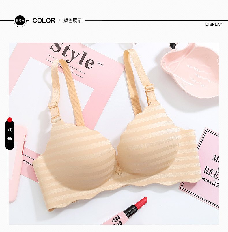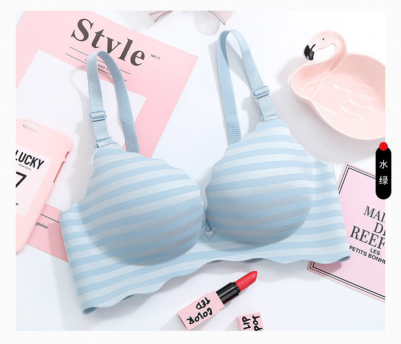 美汇特供:新品甜蜜色彩一片式无痕性感条纹女性无磁内衣聚拢无钢圈女士文胸
