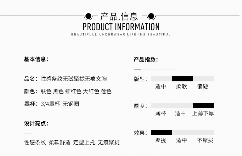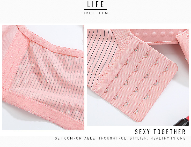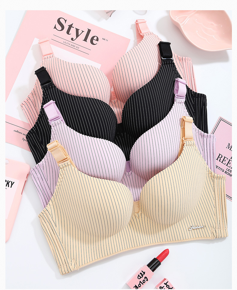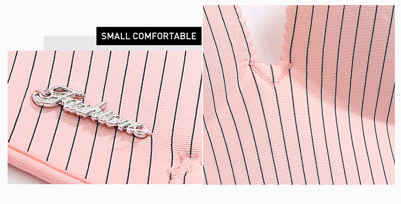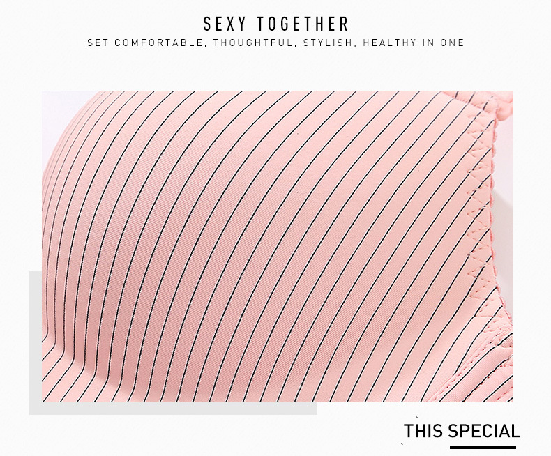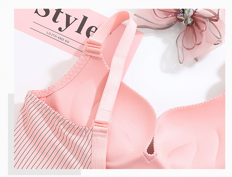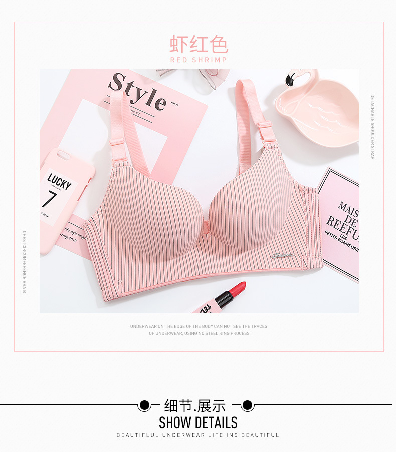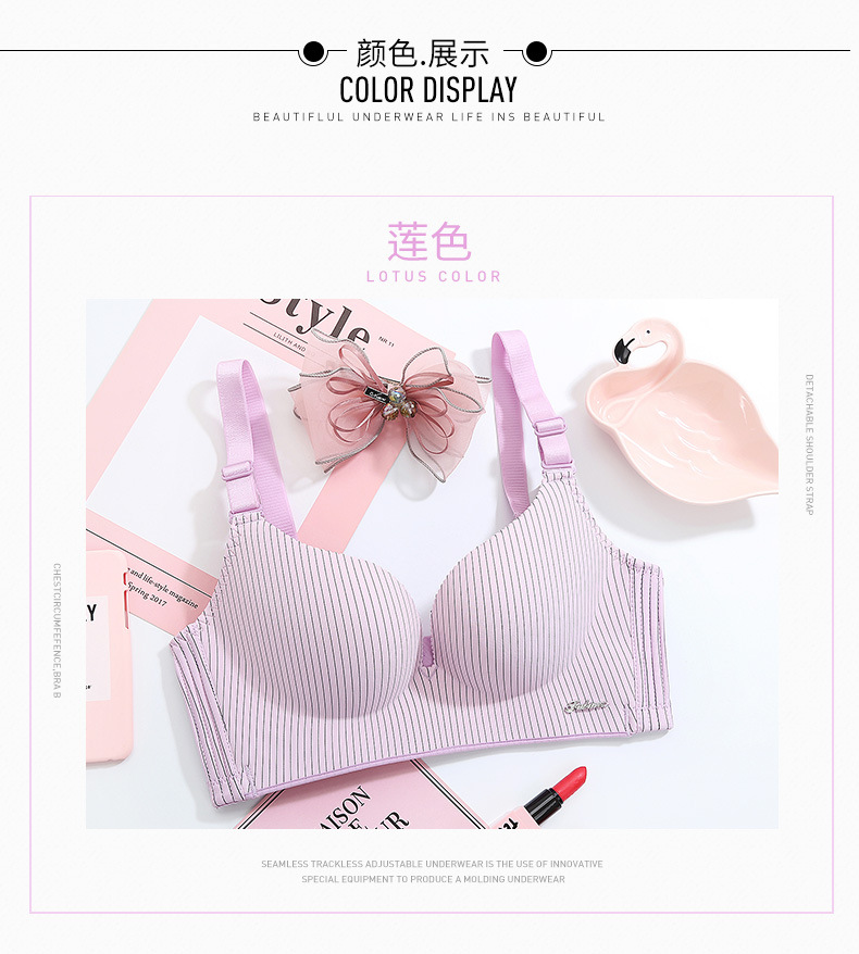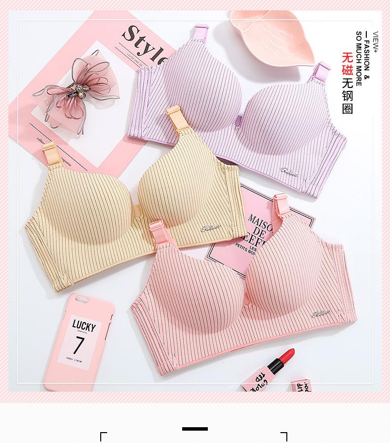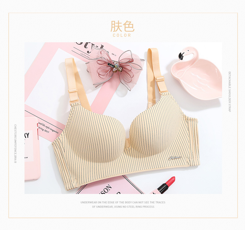 美汇特供:2018新款性感条纹无磁聚拢文胸 无痕无钢圈女士内衣