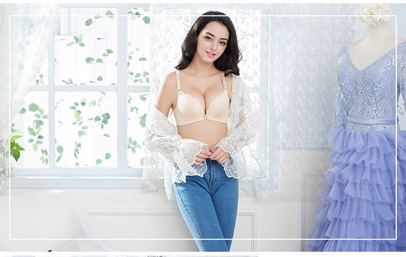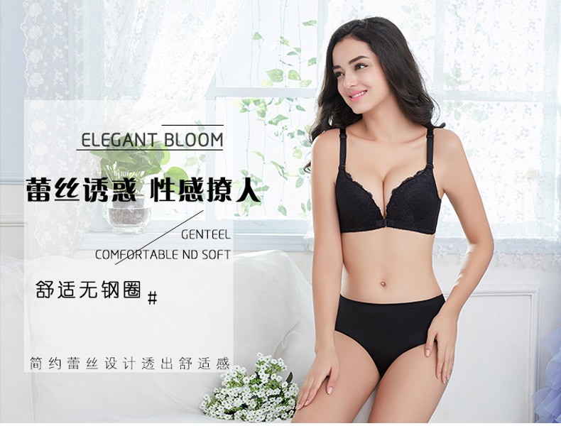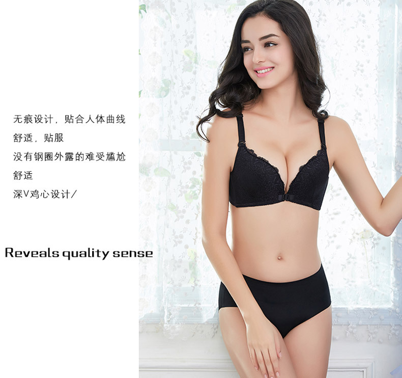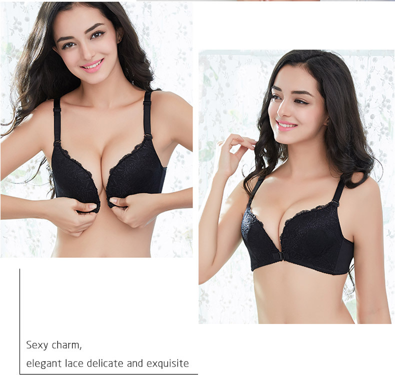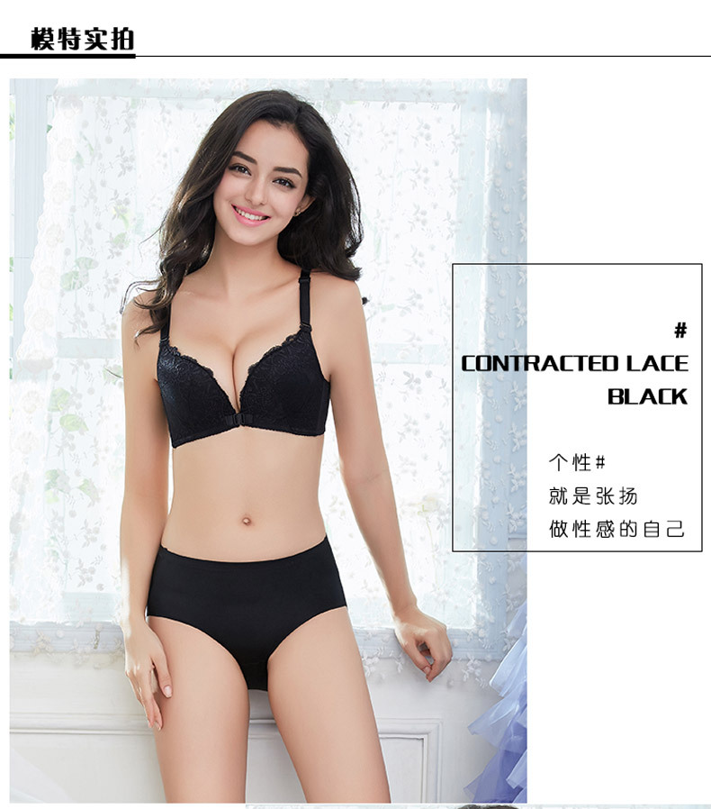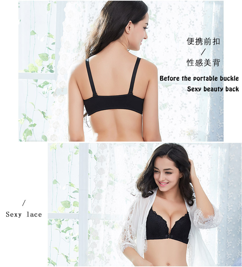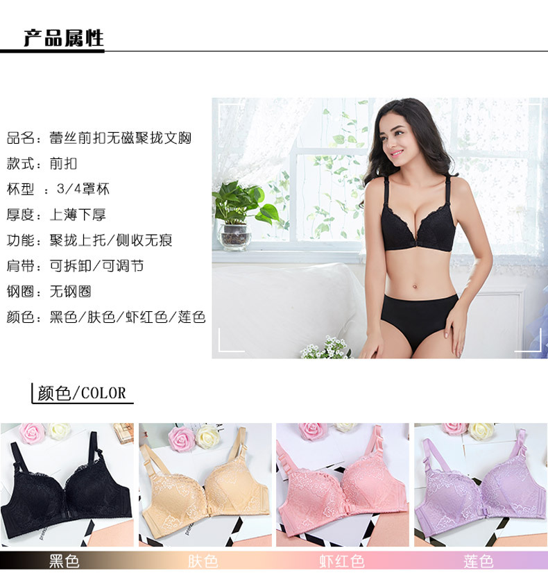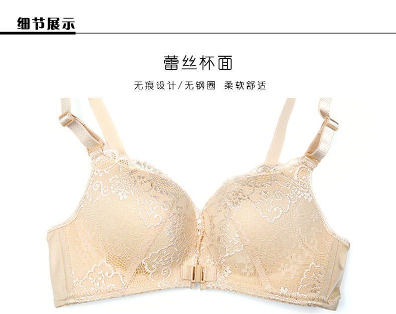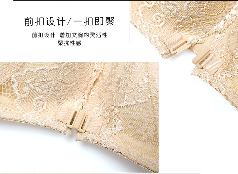 美汇特供:性感无痕蕾丝美背前扣女士内衣无钢圈聚拢无磁文胸