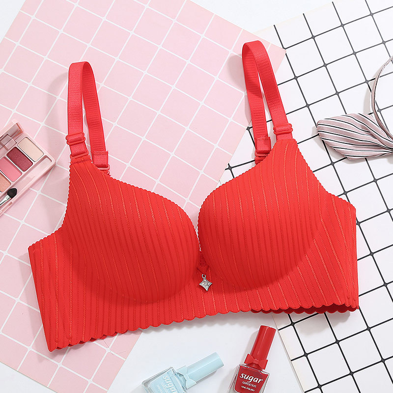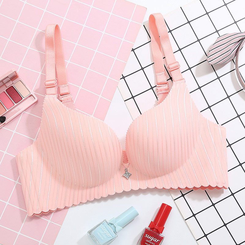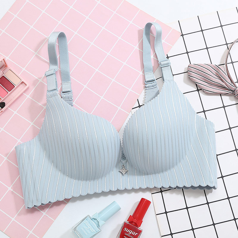 美汇特供:新款性感银光条纹一片式无磁无痕聚拢女士文胸 无钢圈内衣