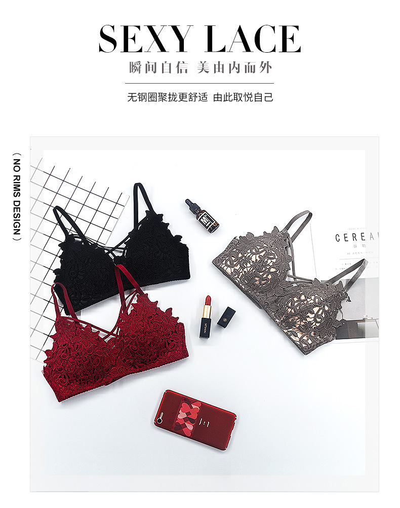 美汇特供:密爱无痕性感蕾丝三角罩杯聚拢女内衣 无钢圈舒适薄罩杯女士文胸