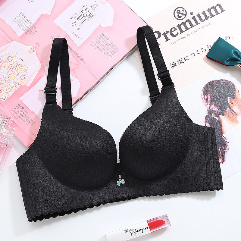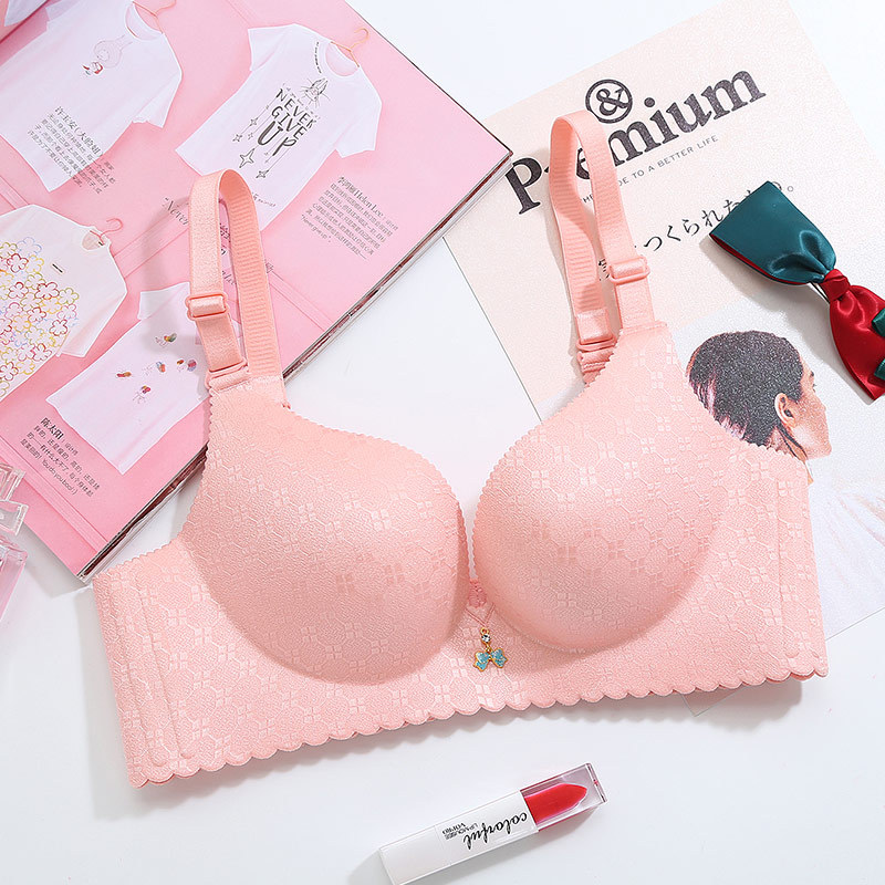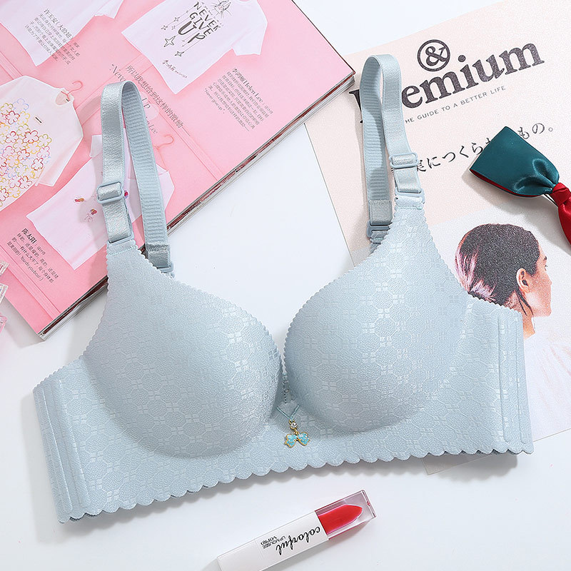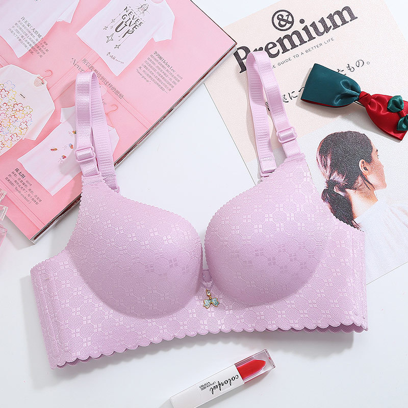 美汇特供:2018新品一片式无痕无磁内衣提花格子手掌杯聚拢无钢圈女士文胸