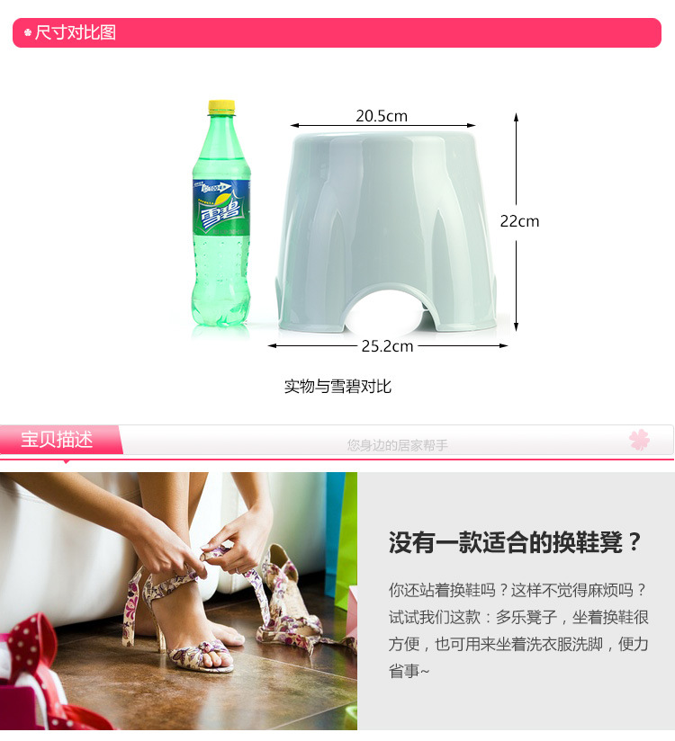美汇特供:简约时尚加厚换鞋儿童凳素色凳子塑料圆凳矮凳坐凳