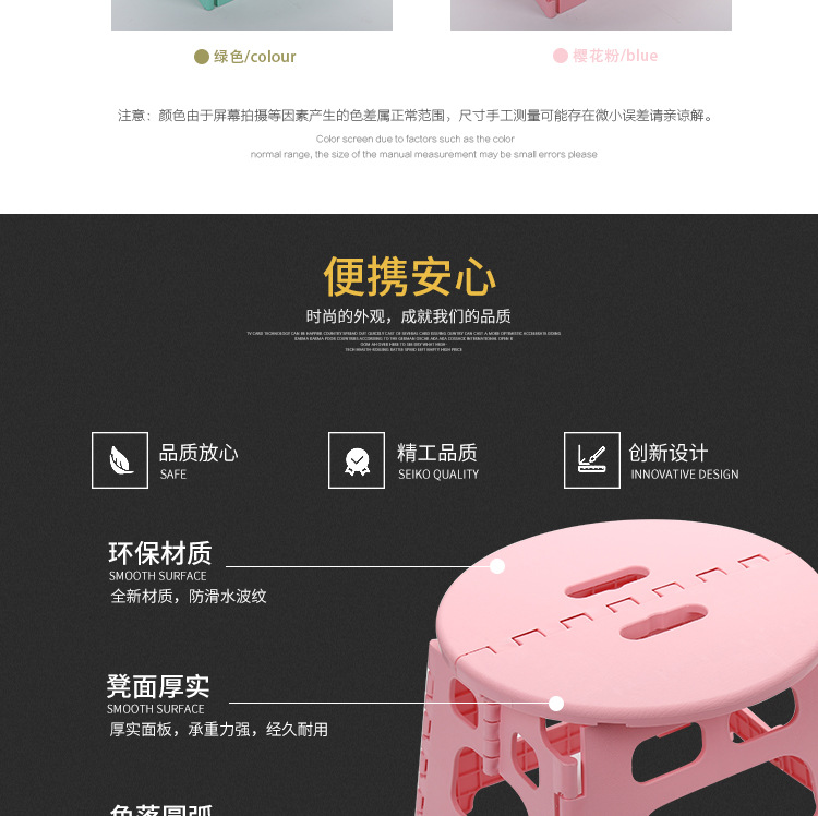 美汇特供:星和良品折叠凳子 便携家用成人户外塑料小板凳 户外钓鱼野营凳子