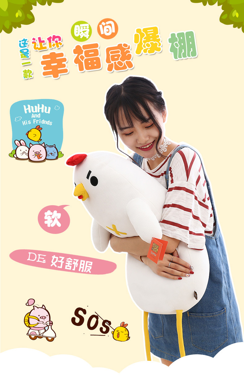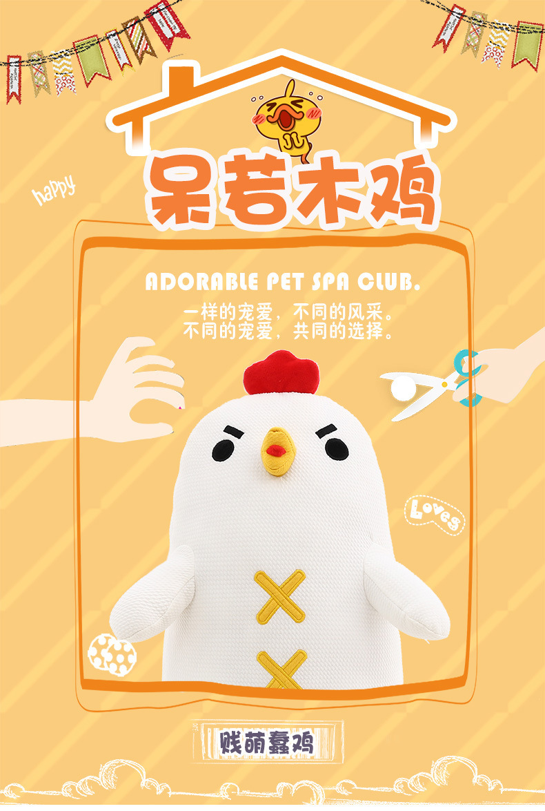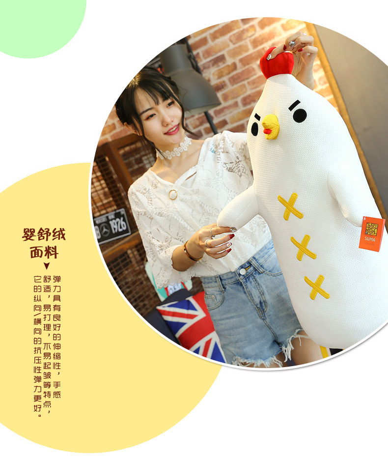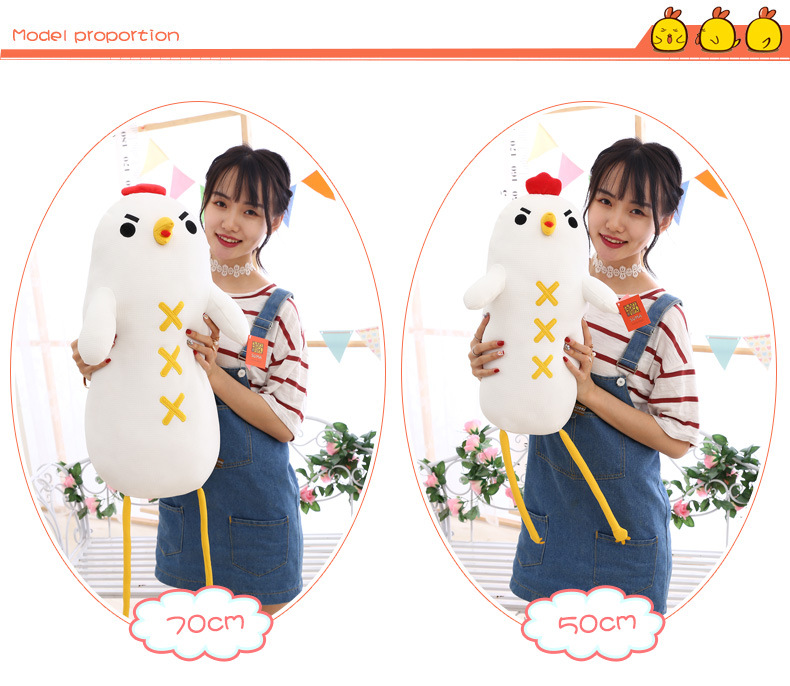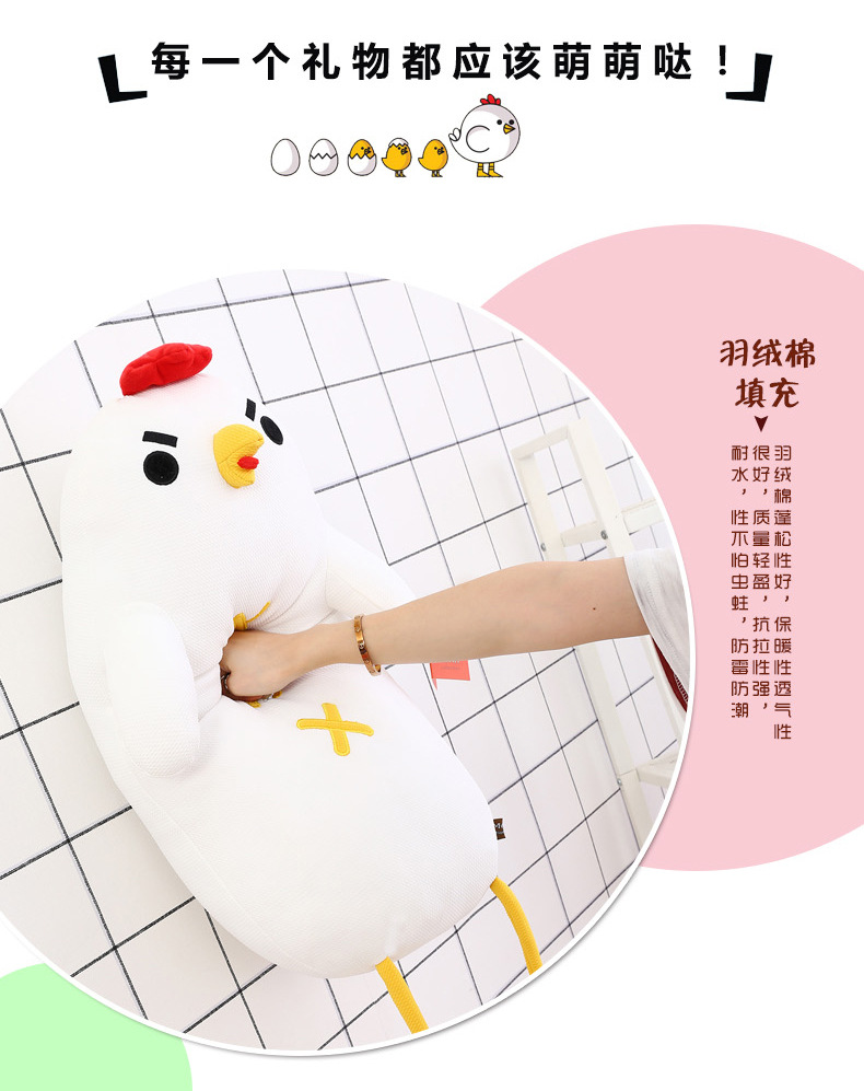 美汇特供:新款羽绒棉呆若木鸡公仔小鸡毛绒玩具玩偶大白鸡布娃娃长抱枕