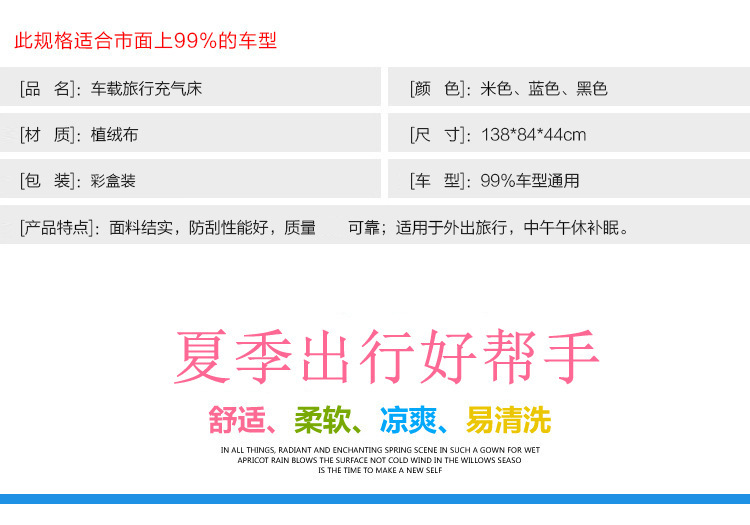 美汇特供:新款车载充气床经典时尚植绒车震床垫自驾旅行用品