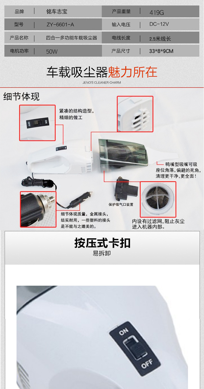 美汇特供:大功率汽车手提式吸尘器 车载便携干湿两用吸尘器