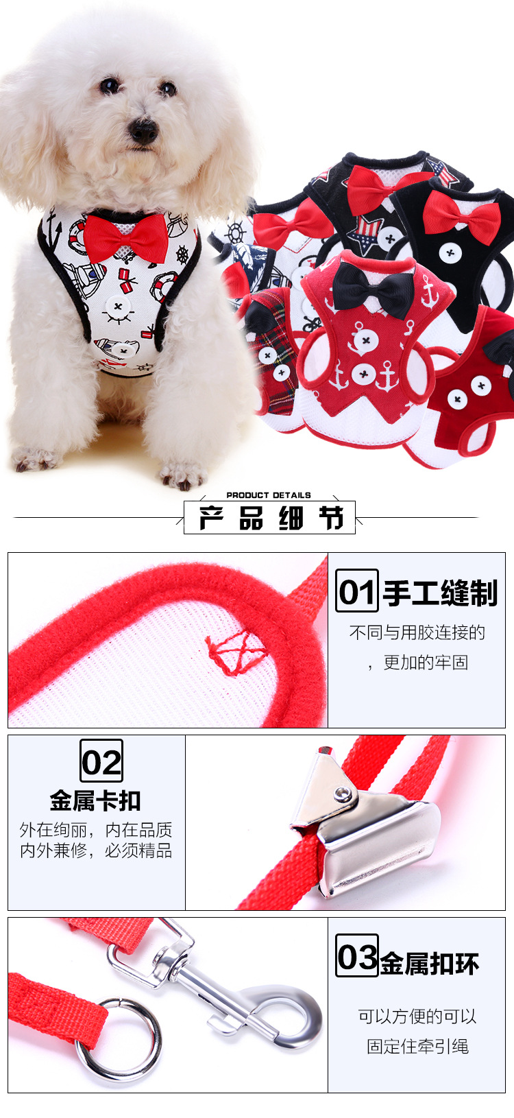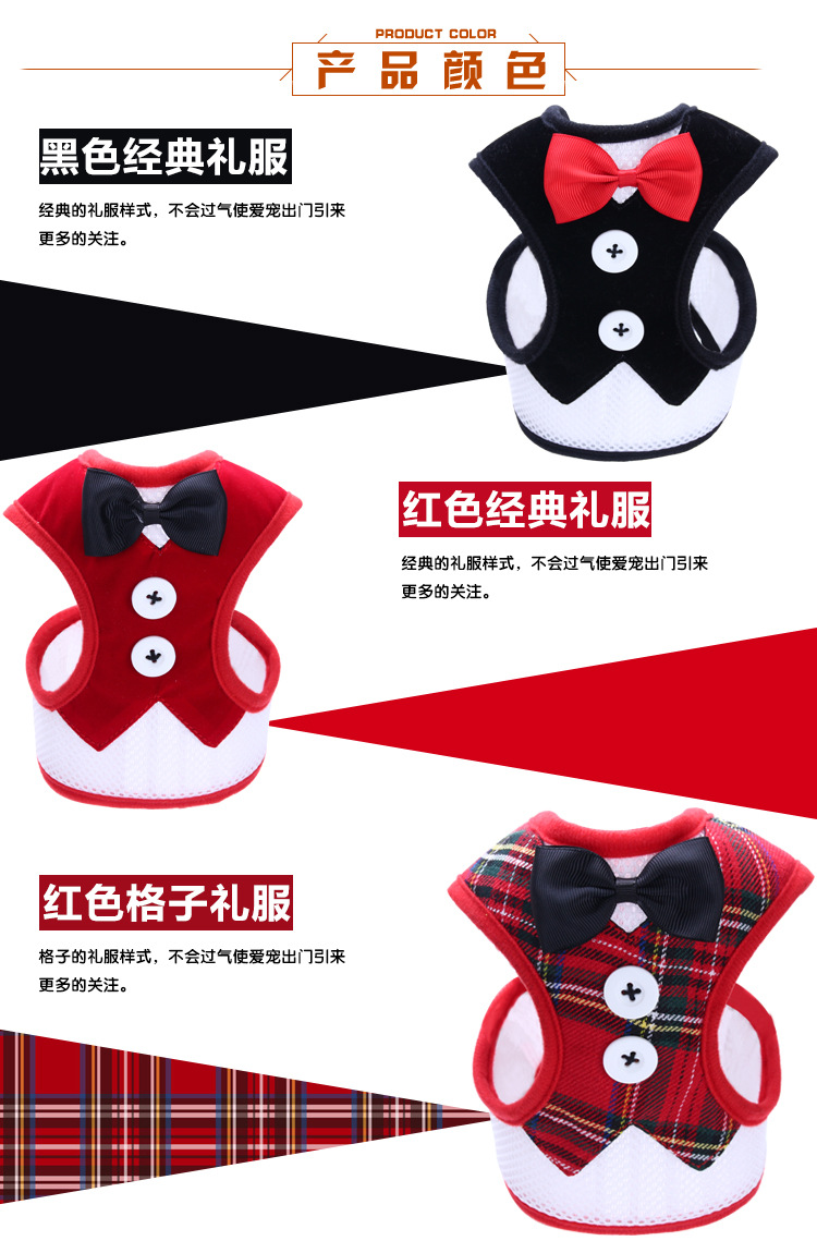 美汇特供:狗狗牵引绳 小型犬泰迪背心式蝴蝶结晚礼服胸背带 哒哒熊宠物用品