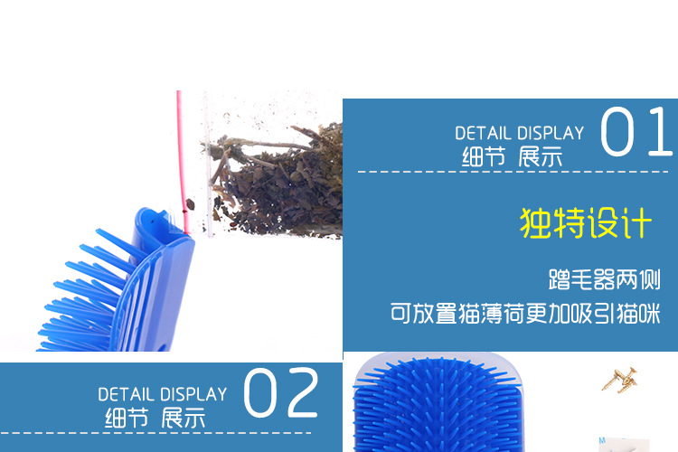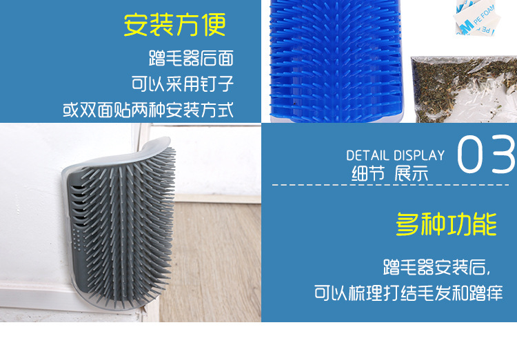 美汇特供:哒哒熊宠物清洁用品 猫咪墙角按摩刷可固定宠物蹭毛器 洗澡脱毛挠痒刷